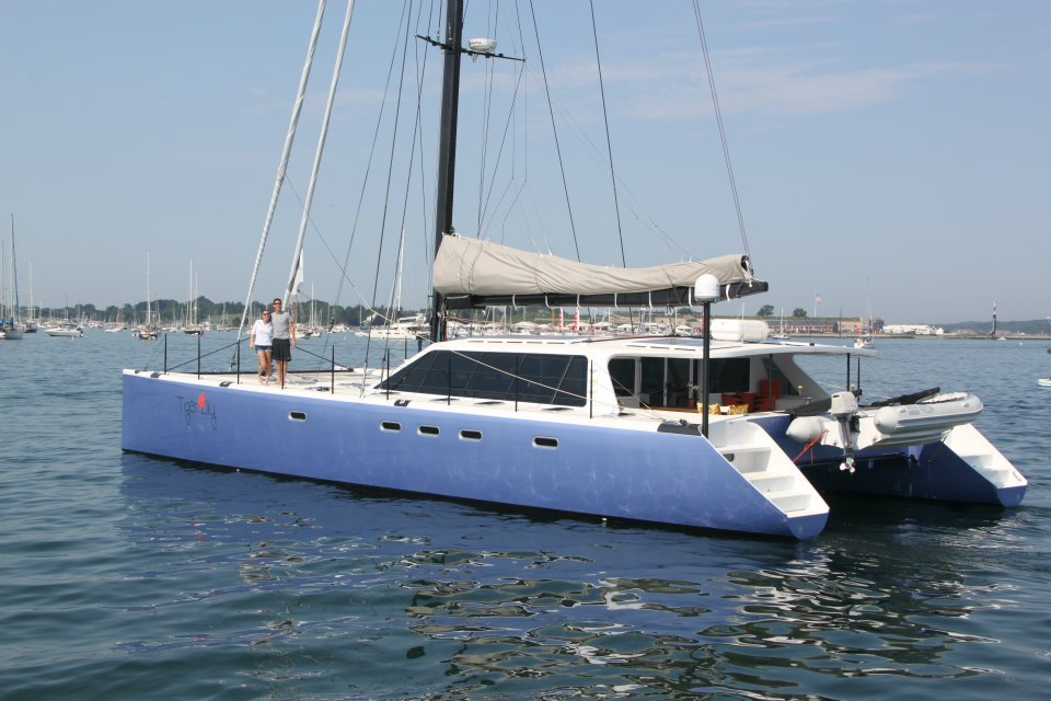 SY TIGER LILY This super-fast 2009 Gunboat 66 just came out of the Newport Shipyard this summer, having an extensive refit, to suit the new owners taste and style from new hatches to upholstery and lighting all is new. These amazing catamarans are famous for their speed and style and if you are adrenaline junkie – Tiger Lily is the cat to satisfy your need for speed. She has plenty of water toys as well – 15’ center console tender with 90HP outboard, water skis, wakeboards, tube, windsurfer to kayak. She sleeps 6 in style and comfort, has a spacious aft cockpit, forward cockpit as well as enormous trampolines for relaxing.