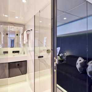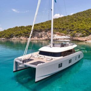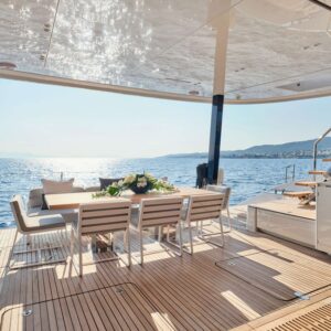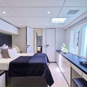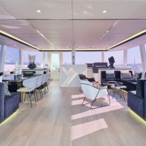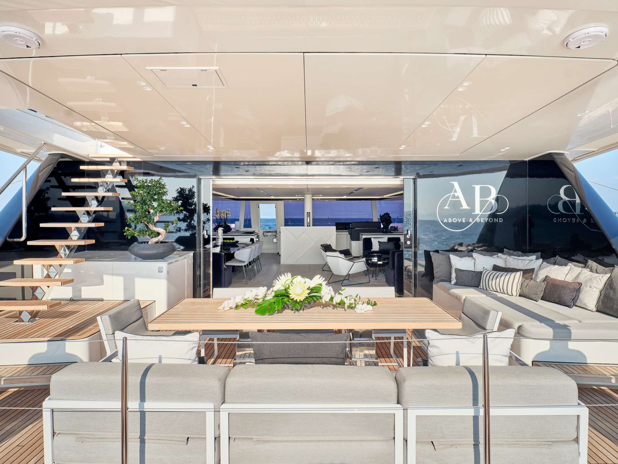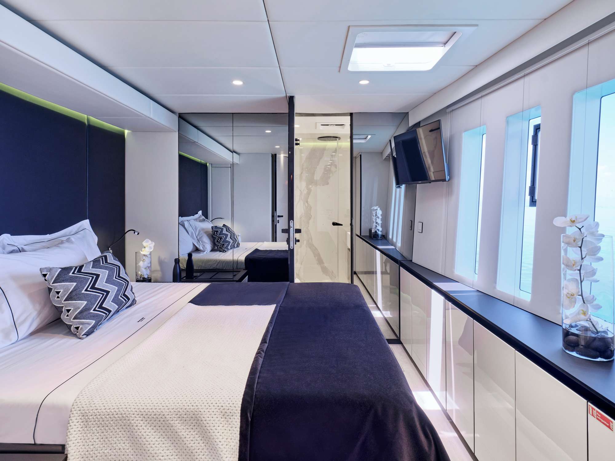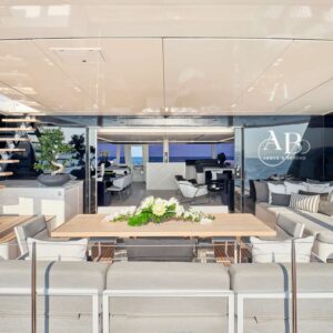 Above & Beyond is a Sunreef 80 state-of-the art sailing catamaran with 340m of living space offering an unmatched level of comfort. The yacht provides impressive accommodation for up to 8 guests in 4 stylish en-suite cabins designed in modern and sophisticated combination of black and white colours. Her aft cockpit merges with the fashionable saloon to offer an astonishing panoramic view and dining area.