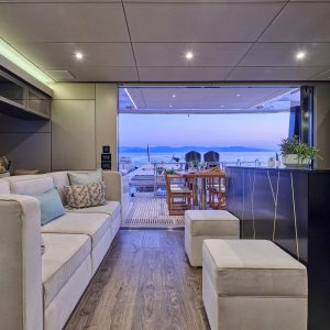 The yacht also features a variety of outdoor spaces to relax, dine, and bask in the sun, so no matter what your schedule looks like, there’s always a place onboard to suit your needs and preferences. With plenty of amenities and toys such as kayaks, seabobs, and snorkeling equipment, the Adara Sunreef 50 is perfect for adventure-seekers.
