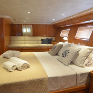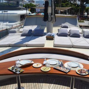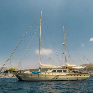 One of the most fascinating Gulets in the whole Mediterranean, Aegean Schatz. She can accommodate up to 10 guests in five large and elegant cabins, each with its own private bathroom. The crew, always keen to the tidiness, hygienic and cleaning on board, is a guarantee for a dream cruise along the Greek islands and Turkish coasts.
