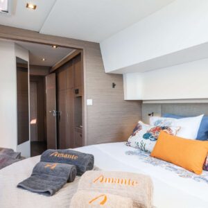 One of the key features of AMANTE is its spacious and well-designed interior. The boat has four guest cabins, each with its own en-suite bathroom with separate shower, making it perfect for larger groups or families. The cabins are also air-conditioned, so you can stay cool and comfortable even on the hottest days.