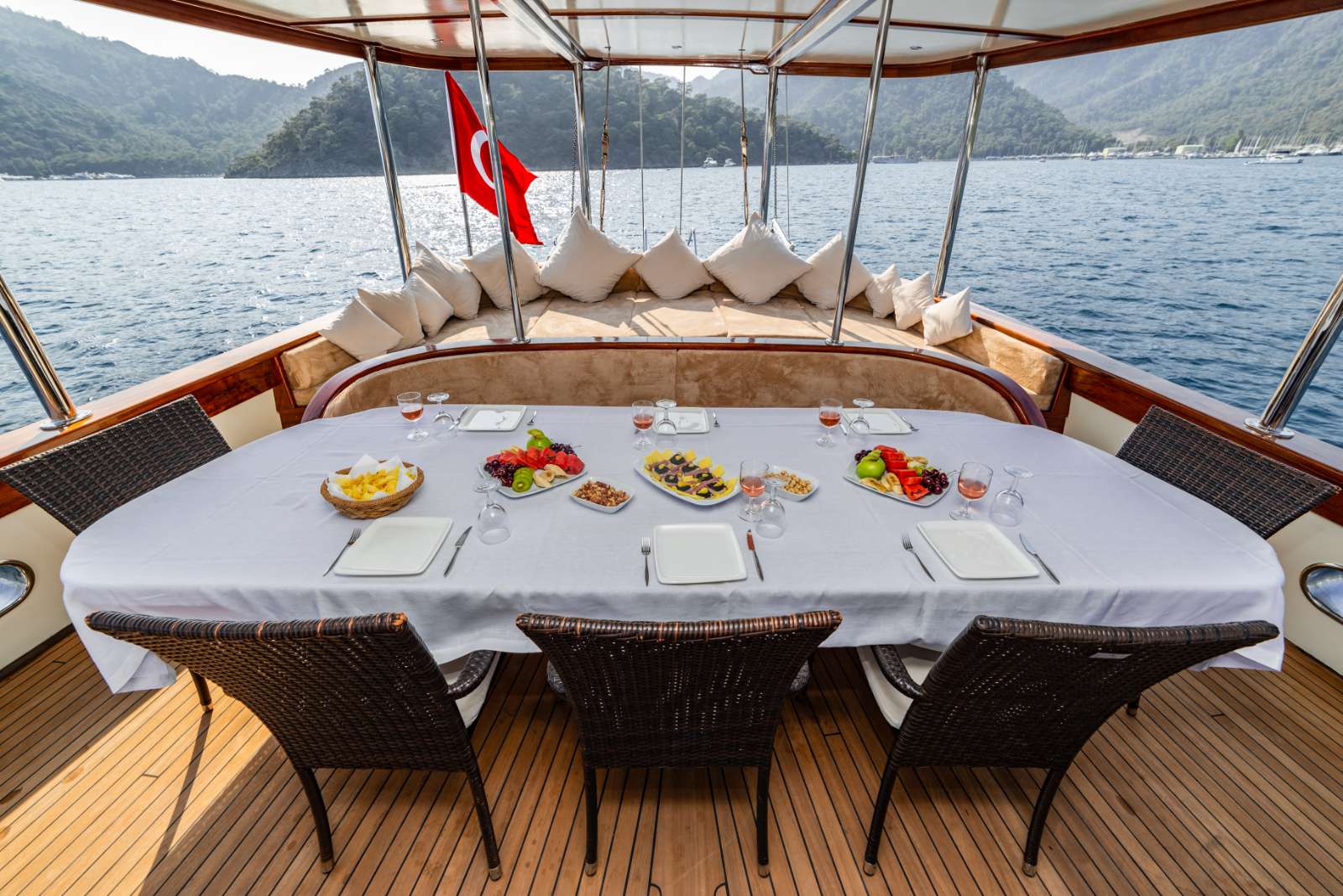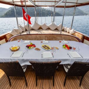Captain Yusuf Gündüz: Yusuf has all together 30 years of sea life, of which 16 years as yacht captain and has accumulated all the national and international qualifications including his yacht master license. He is with the Amazon Solo over 15 years. He has extensively cruised the Mediterranean on Sailing yachts and motor yachts. With his knowledge and experience, Yusuf aims to provide an enjoyable and friendly time onboard Amazon Solo. Yusuf speaks English and Turkish, all the guests like him a lot and highly appreciate his full commitment in providing them the best times onboard. He is also a good fisherman and most likely, like all the previous guests of the Amazon Solo, he will serve you his own fresh catch during the cruise, if you are lucky langustines along with plenty tasty food onboard. Chef Hüseyin Yılmaz: Hüseyin has been cheffing in restaurants and yachts since 2000, he started his career as assistant cook at restaurants then worked at 4 & 5 tars hotels in Mugla region, then in 2017 he joined gullet and started working on boats as chef. Hüseyin has excellent knowledge of Turkish and Mediterranean dishes, he is with the Amazon Solo for the 3rd season and has a very rich menu from the Turkish kitchen, some of the meals he prepares can not be easily found or prepared by many restaurants, he is keen to produces his own bread and ‘pastries’ in the mornings and for afternoon tea times, as well as creative and tasty dishes and can customize a menu for any occasion or dietary preference. Senior sailor ( Service & excellent bartender ) Özcan Gündüz: Özcan has been working on boats for fifteen years and he is with our company over 18 years and on the Amazon Solo for 14 years. He has completed all the STWC safety courses and has able seamanship certificate. Ozcan is renowned for his cocktails and he can prepare delicious mixes for sundowners. Özcan speaks medium Level English and Turkish. Deck hand & Steward Irem Koca: İrem joined Amazon Solo winter 2019, he was working on a gullets before which operated in Turkey & Greece. He graduated from vocational school of Maritime and Port Girne University in Cyprus. İrem speaks medium Level English and Turkish. Housekeeper and assistant stewardess Sevda Aydın : Sevda joined Amazon Solo 2023 winter, last year she was working on various boats as free lance stewardess. She is graduate ofvocational school of health at Celal Bayar University. She likes being part of the team work and she is smiling person all the times. Sevda speaks medium Level English and Turkish.