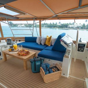 Captain Ramón Linderman For over 35 years, Captain Ramón Linderman has been living his dream on the water. With a 200-ton U.S. Coast Guard Captain’s License and a lifetime of experience navigating some of the world’s most stunning and challenging waters, he brings skill, passion, and a true love for the ocean to every voyage. Born and raised on the sun-kissed shores of Puerto Rico, Ramón was drawn to the sea from an early age. He spent his youth sport fishing and chasing waves as a professional surfer, competing internationally and exploring coastlines across the globe. That deep-rooted love for the ocean eventually led him into the marine industry, where he’s built an impressive career commanding sport fishing vessels, sailing yachts, and luxury motor yachts. Over the years, he’s captained boats for celebrities, high-profile clients, and seasoned sailors alike—all of whom appreciate his expertise, easygoing nature, and deep respect for the sea. Ramón has an intimate knowledge of the Caribbean, Atlantic, Mediterranean, and South American waters, with favorite ports of call in the Bahamas, New England, and Bermuda. Whether navigating remote tropical islands or charting courses along historic coastlines, he has a knack for making every journey feel like an adventure. When he’s not at the helm, you’ll likely find Ramón doing what he loves most—surfing, scuba diving, sport fishing, or spearfishing. He also enjoys the thrill of open-ocean racing, having competed in the Newport-Bermuda and Marion-Bermuda Cruising Yacht Races. But no matter where the sea takes him, he’s always happiest when sharing stories and creating unforgettable experiences for those lucky enough to step aboard. For Captain Ramón, the ocean isn’t just a job—it’s home. And when you sail with him, you’re not just a passenger—you’re part of the journey. personal touch to every dish Chef / Mate Leala Simich Leala was born and raised in Southern California. She grew up a block from the ocean and has been transfixed and in love with the sea ever since. After she finished raising her two children, due to a bit of empty nest syndrome, she left her longtime career as a Hollywood hairstylist and took to the sea. She went on to sail the eastern seaboard multiple times from the Bahamas up to Nantucket. She has been sailing all around the Caribbean on and off since 2014 hosting guests, accommodating their wants and needs and showing them all that boat life has to offer. Leala is an avid snorkeler and enjoys guiding tours in or around the waters of the Bahamas and the Virgin Islands. Leala’s culinary expertise is rooted in her passion for quality local ingredients and the freshest seafood available. Growing up in the diverse food scene of Los Angeles, she developed a deep appreciation for Latin, American, and Asian cuisine, mastering the balance of bold flavors and techniques. Her time spent in the Caribbean has further expanded her culinary repertoire, inspiring her to incorporate vibrant island flavors and innovative fusion dishes into her menus. A graduate of Ashburton Culinary Academy in Devon, England, Leala brings a refined skill set and creative approach to every meal. Whether crafting elegant multi-course dinners, light and refreshing beachside lunches, or hearty breakfasts to fuel a day of adventure, she takes pride in tailoring each dish to suit her guests' preferences. She has extensive experience accommodating a wide range of dietary needs, including paleo, gluten-free, vegan, and keto, while still ensuring every meal is both satisfying and beautifully presented. Even the pickiest eaters—kids and adults alike—find something to love on her thoughtfully curated menus. Leala’s goal is to create an unforgettable culinary experience throughout the charter, designing a menu that perfectly complements the journey, from casual al fresco dining to exquisite plated dinners under the stars. Whether sourcing the finest local ingredients from vibrant island markets or preparing a freshly caught seafood feast, she brings creativity, precision, and a warm, personal touch to every dish.