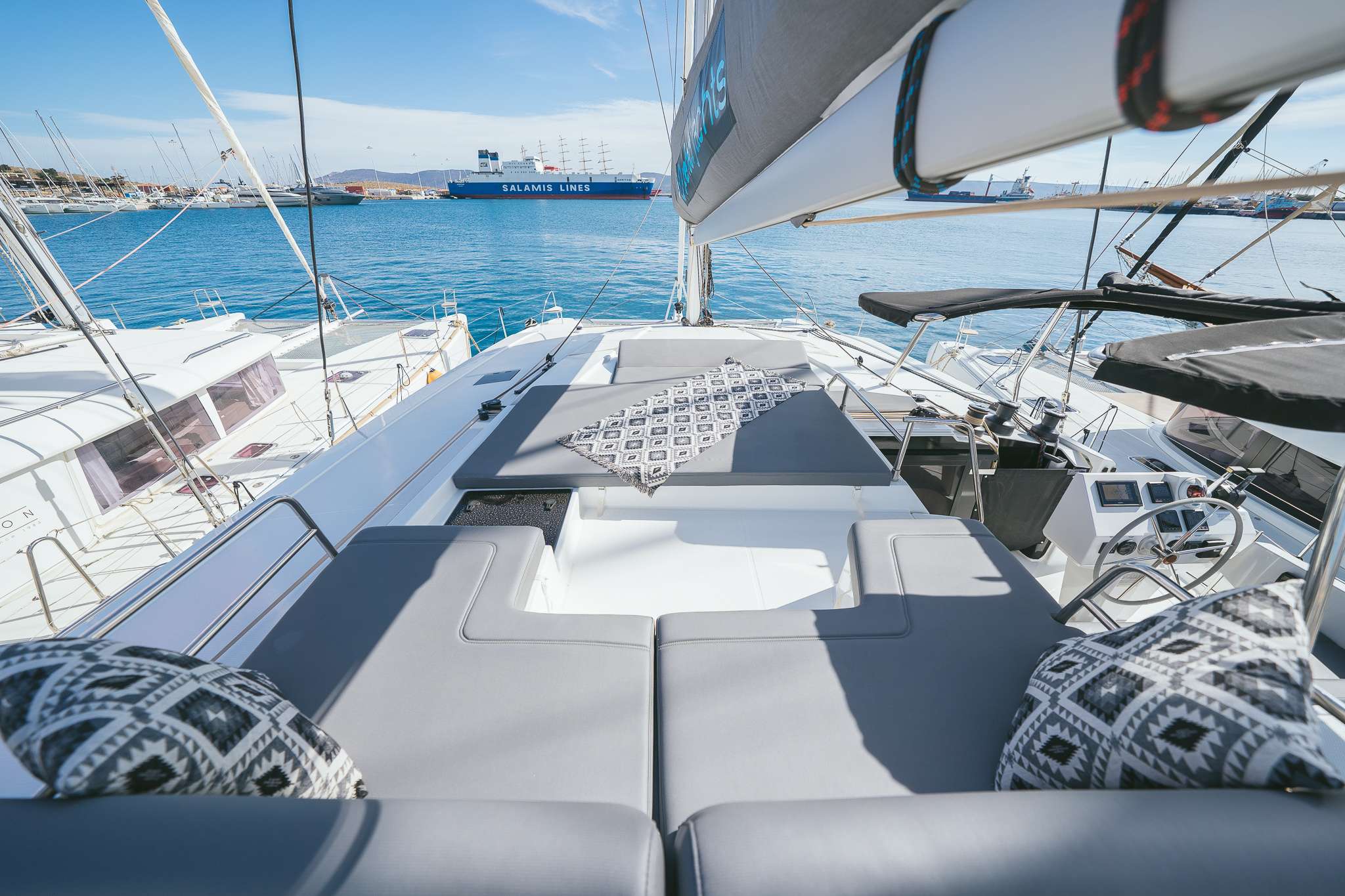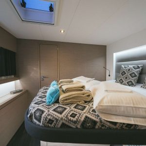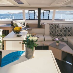 The catamaran Saona 47 – Aquaspirit 2020 is a luxurious vessel that combines comfort, performance, and high-quality construction. It features spacious interiors and exteriors, ideal for hosting families or groups of friends. With its unique design, the Saona 47 offers unmatched elegance and functionality for unforgettable sailing experiences.