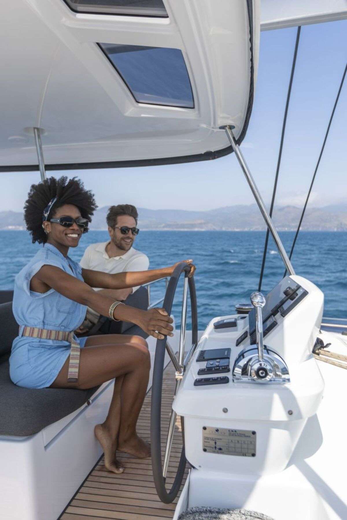 The 2025 Lagoon 51 catamaran ARANEL is a luxurious and spacious vessel designed for ultimate comfort and performance on the water. Featuring 6 well-appointed cabins, ARANEL offers ample accommodation for up to 12 guests, making it perfect for family vacations or group charters. The catamaran boasts a sleek, modern design with a flybridge that covers 80% of the roof, providing expansive sunbathing areas and a convivial space for relaxation and socializing. The interior is bright and airy, thanks to large windows and an optimized layout that enhances the sense of space.