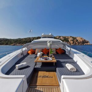 Captain: Francesco MURGIA was born in Olbia, Italy, in March 1984, STUDIES: Francesco graduated from Olbia Technical Institute in Tourism branch. Spoken languages: italian (mother tongue), english (fluent) Navigation Areas: Sardina, Corsica, Thyrrenian Sea, South of France, Balearics, Malta After some nautical experience with private boats, in 2008 he joined the crews of the company currently owner of ATHOS. Due to his good character, innate ability and professional seriousness, Francesco has made a rapid career in the company from an early age, taking the necessary tests and exams, acquiring the title of Yachting Officer in 2016 and becoming Captain of the yacht Princess 78 ARAMIS of the same Owner’s fleet. In 2018, in order to be able to achieve more important maritime titles through embarkations on pleasure boats, he embarked as Captain on the CBI NAVI 115 feet AQUARIUS, achieving the title of “Capitano del Diporto” (Pleasure Captain) and Yacht Master 500 Tons in 2022. He remained on board the Aquarious until 2023 when he was appointed as Captain of the Leopard 32, ATHOS. Francesco is a precise, professional, very serious and human professional who investigates problems without leaving anything to chance and knows how to best manage his crew members with the right authority and by example. Excellent sailor, has very thorough knowledge of the area. With a serene and kind character, he has always deserved the most complete esteem, admiration and trust from Owner and guests.. 1st Officer: Francesco DINI Francesco was born in Italy, Pescia, Tuscany : on the 28th January 1977 Education: Scientific High school graduation in Lucca, Tuscany. in November 2021 he was promoted to the rank of Pleasure Yacht Officer which allows him to be Captain of pleasure craft units up to 24 meters. Spoken languages: italian (mother tongue), english (good) Open-minded and jovial with innate sympathy and communication skills, great experience and deep knowledge of the sea, Francesco is a person to trust on the management of the boat and he always receives the full approval of clients. Therefore, as well as being an excellent sailor with great experience, Francesco is fully capable of occupying the position of first mate on board of the yacht, supporting the Captain's work in many of his duties and contributing significantly to the perfect functioning of the crew Thanks to the many international relationships held his english knowledge is very good Chef - TBA Stewardess - TBA Simone ERETTA - Deck-hand Born on 11/13/1977 in Olbia . Education: graduation at the Technical and Electronic Institute in Olbia, Sardinia becoming an electrical and electronic expert in 1996. He then obtained various licenses and patents for the condition of sailing and motor boats, of rescue swimming, of sport diver Spoken Languages: italian (mother tongue), english