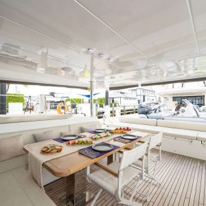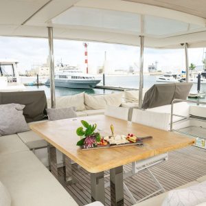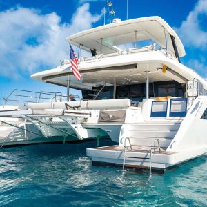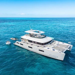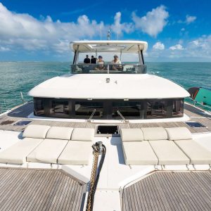 Introducing Atlantia, a stunning 63’ power catamaran with an impressive 33-foot beam. Designed for both luxury and performance, Atlantia offers five beautifully appointed staterooms, each with its own en-suite bathroom, plus dedicated crew quarters. She comfortably accommodates up to 10 guests overnight, ensuring an unforgettable experience on the water.