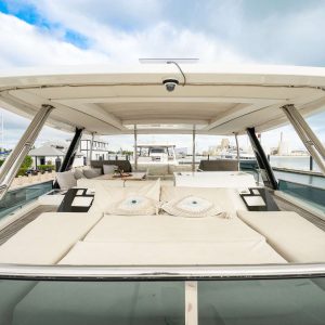Atlantia’s all-teak decks create an elegant setting, while her expansive bow and stern lounge areas provide the perfect spaces to unwind. Outdoor amenities are second to none, with two refrigerators, sinks, and an ice maker to ensure guests are always refreshed. At the helm, cutting-edge navigational equipment and state-of-the-art technology ensure a seamless and safe voyage.