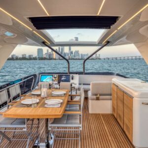 Brand new 20,46m (70’4’’) luxury motor yacht based in Croatia. This refined and chic flybridge cruiser, designed by the renowned Garroni Design cabinet, is made to pamper guests with maximum comfort. Combining luxurious interior finished throughout, she accommodates up to eight guests in four spacious and luminous cabins. From the galley aft, the 360-degree panoramic views to the interior saloon, and the separate access to the master cabin, the Prestige 690 model has numerous stand-out features usually seen on much larger yachts. Notably great 22 m2 hardtop flybridge with an electric sunroof. Yacht also features a fully wireless 3-zone Sonos sound system: in cockpit, saloon, and on the flybridge. Two highly professional crew members provide excellent service and will go the extra mile to cater for your every wish. Whether you’re looking for a romantic getaway or a fun-filled family adventure, Prestige 690 is the perfect choice for the Croatia yachting holiday you will never forget.