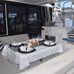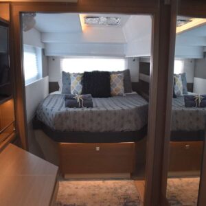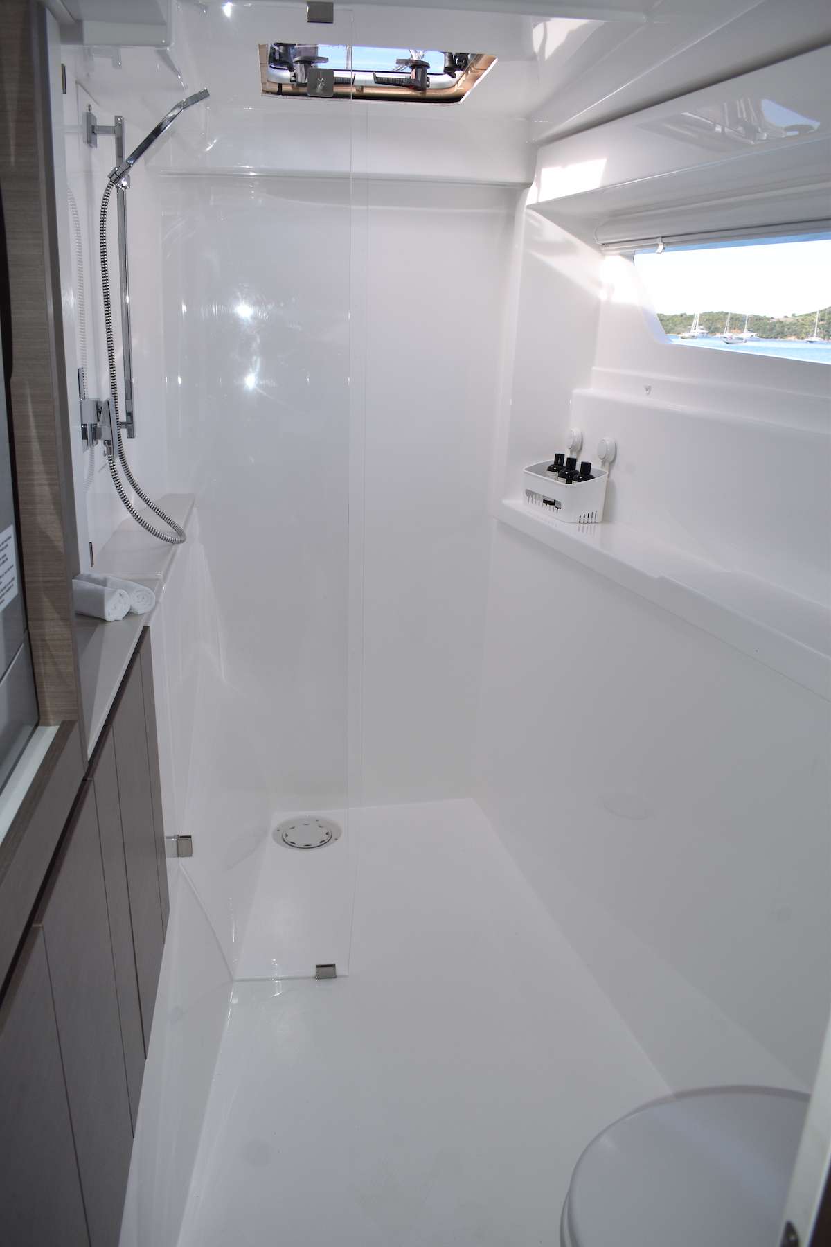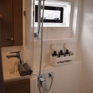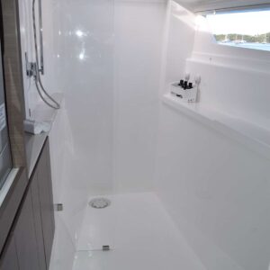The cabins include their own private en-suite bathrooms. Both bathrooms include their own designated shower area; a feature not currently found on catamarans in this size range.