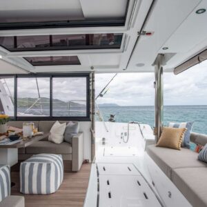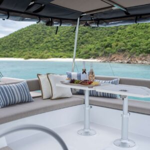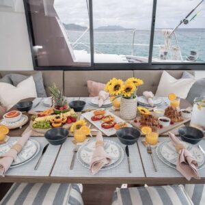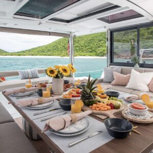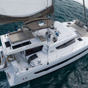 Borrowed Bounty will accommodate 8 charter guests in 4 spacious queen cabins. She is a 2024 sailing catamaran offering SeaDek encompassing the entire deck, upgraded engines, solar panels, air conditioning, water maker, ice maker, full sized refrigerator, a fully customizable menu, ecofriendly and reef safe toiletries, a bar stocked to guest preference, coffee/espresso machine, rendezvous scuba diving, snorkeling gear, underwater scooters, subwing, wakeboard, stand up paddle boards, kayak, towable water tube, floating dock, pool noodles, fishing gear, board and card games, television in the salon, Fusion 3 Bluetooth enabled sound system and Borrowed Bounty giveaways.