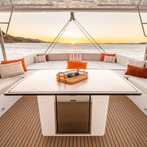 Captain Oliver: Experienced captain from Barcelona with over six years commanding in the Balearics. His career includes countless yacht deliveries from shipyard to owners and working with the largest charter company in the region. Calm, confident, and dedicated to creating a welcoming atmosphere on board, leads with professionalism while fostering seamless teamwork. With a deep understanding of maritime operations, he ensures every journey is safe, efficient, and unforgettable for our guests. Cook Patricia: Our professional cook delivers top-quality meals, ensuring a delicious and nutritious dining experience for passengers on board. Skilled in menu planning, food safety, and adapting to maritime challenges, she brings creativity and efficiency to every dish, even in the most demanding sea conditions. Enhance your voyage with expertly crafted cuisine tailored to your needs. Hostess Carolina: Carolina is an outstanding hostess that ensures every guest aboard our catamaran feels welcome and valued. With a keen eye for detail and a warm, friendly demeanor, she creates a relaxed and enjoyable atmosphere, attending to guests' needs with professionalism and care. From greeting passengers to providing top-notch service, she enhances your journey, making it an unforgettable adventure at sea.