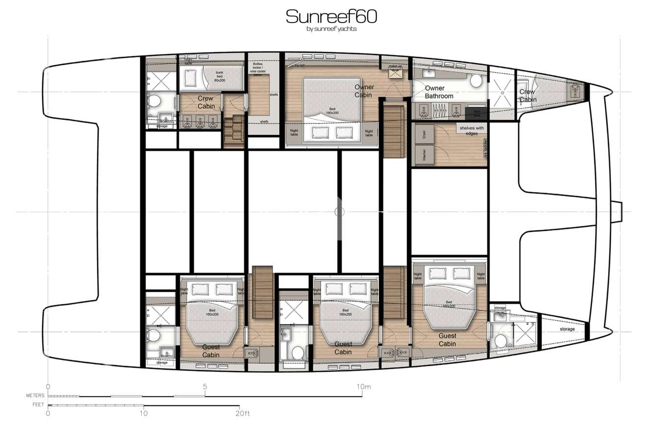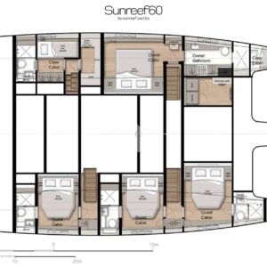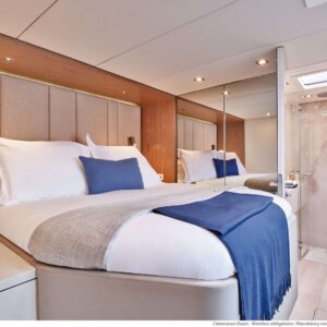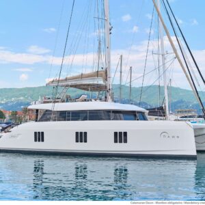 A 2019 launch and 2023 refit by AE interior, Sunreef 60 DAWN features both, a smart and charter-friendly layout as well as impressive and relaxing social areas at the bow, stern cockpit and flybridge.