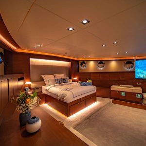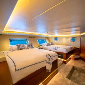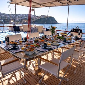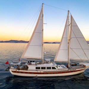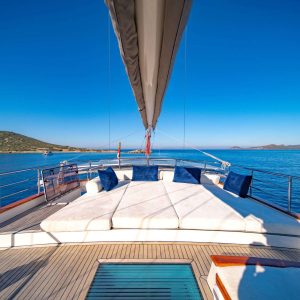 Sailing yacht DOUBLE EAGLE was built in 2005 and extensively refitted in 2023. Constructed with a wooden hull and superstructure, she is traditional in style but boasting modern amenities, comforts and decor details. She is unique as one of the few Turkish Gulets boasting a sundeck and the detail in her finish is evident, with features such as her beautifully crafted marble deck table and bar. In 2024 at the TYBA Show, she was awarded “The Most Welcoming Crew” and the “Chef’s Award”