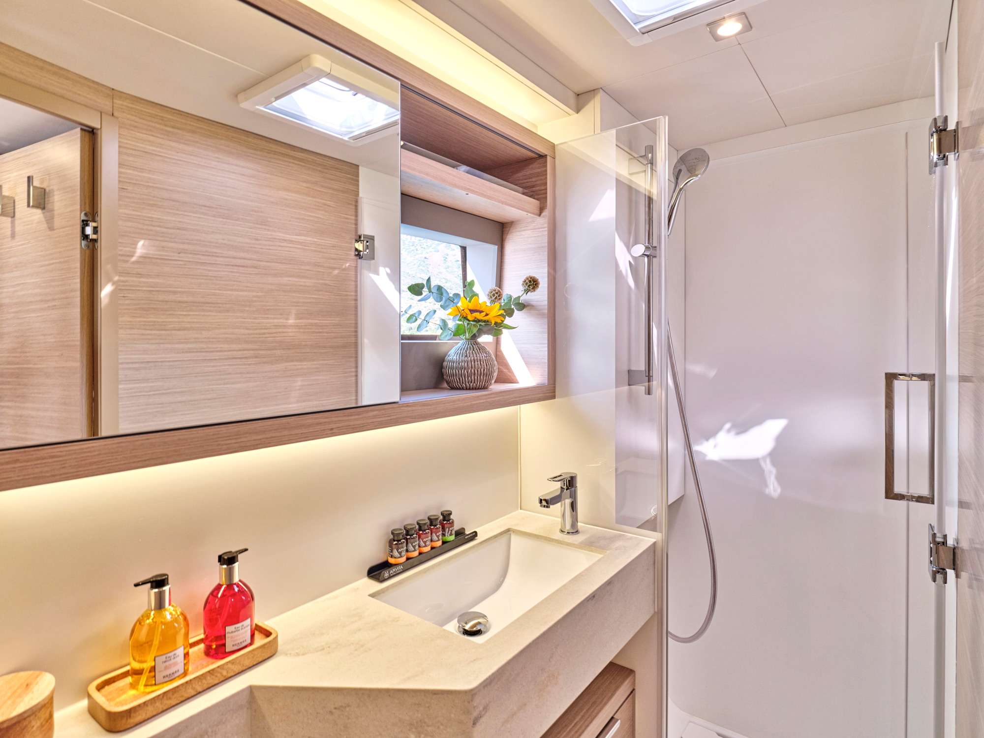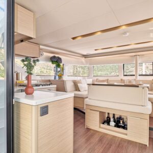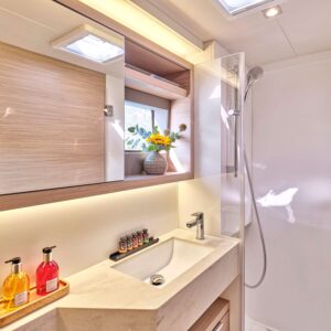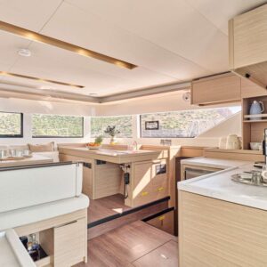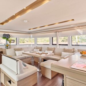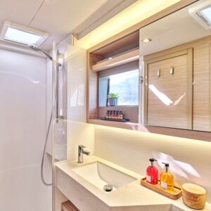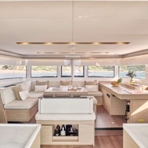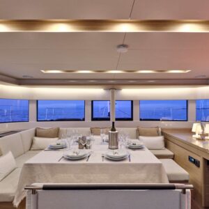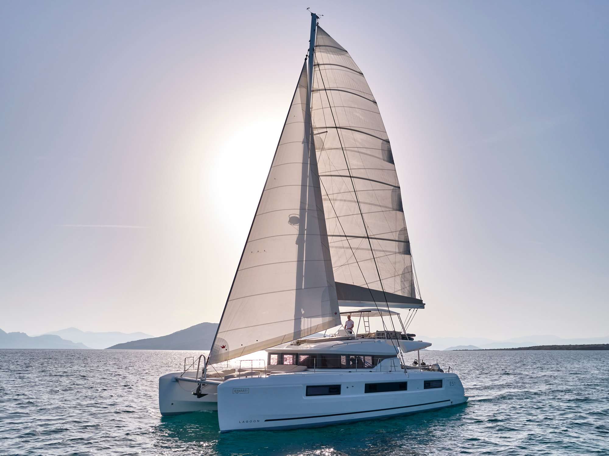 EFKRATI is a brand new Lagoon 51 catamaran, built in 2023 with high standards. She can comfortably accommodate up to 12 guests in a configuration of 6 double cabins with Queen size bed and 4 guest bathrooms. Her raised lounge of the salon provides the best 360° panoramic views of the water. She offers a wide variety of water toys for entertainment, while her professional crew of 2 will cater for all your needs.