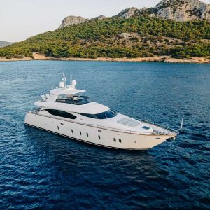 Built as demo in 2014, launched in 2018 and extensively refitted in 2024, the Maiora 82’ motor yacht EL PECADO epitomizes meticulous care and attention to detail. Accommodating 9 guests in 4 elegantly appointed cabins, she provides both comfort and privacy. The yacht boasts a spacious salon equipped with a 50″ Samsung TV and a BOSE sound system, perfect for entertainment. Guests can enjoy a variety of water toys onboard, ensuring endless fun on the water. EL PECADO is also eco-conscious, featuring low fuel consumption for efficient cruising without sacrificing speed or comfort. Her advanced Zero Speed Stabilizers guarantee smooth and tranquil journeys, making her ideal for exploring unique destinations. Whether lounging on the sun deck, diving into crystal-clear waters, or savoring a sunset dinner, EL PECADO promises an unparalleled yachting experience.