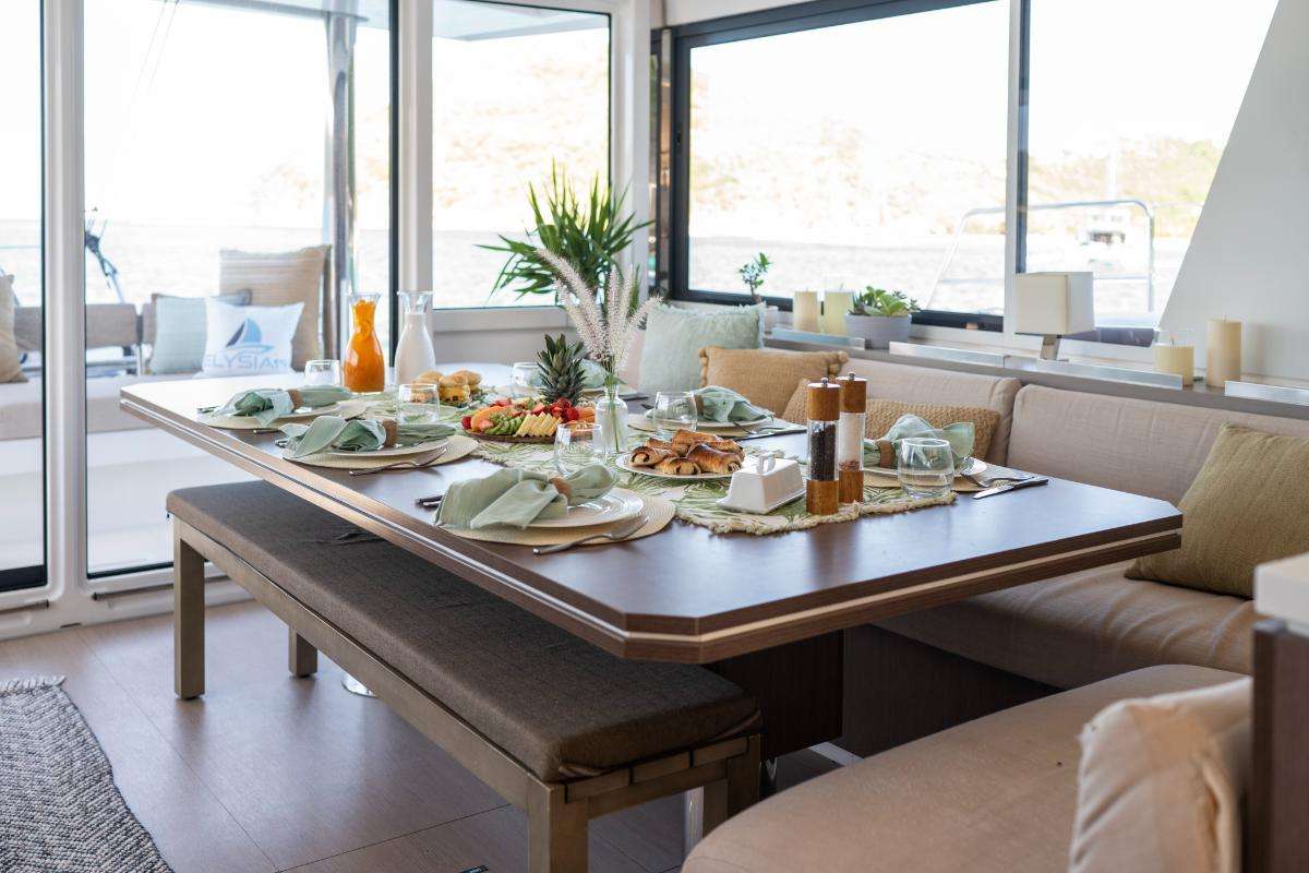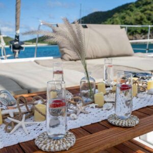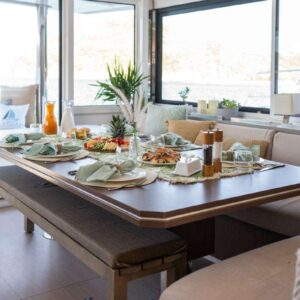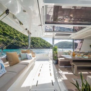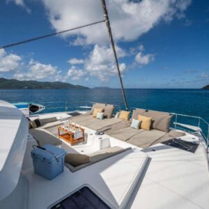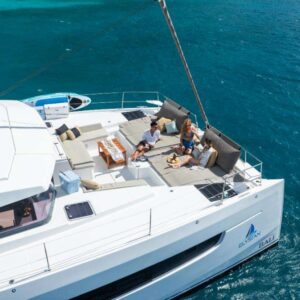 Elysian will accommodate 8 charter guests in 3 spacious queen cabins and 1 sprawling master cabin for those who desire more space. She is a 2021 sailing catamaran offering televisions in each stateroom, a washer/dryer, solar panels, air conditioning, water maker, ice maker, full sized refrigerator, a fully customizable menu, ecofriendly and reef safe toiletries, a bar stocked to guest preference, coffee/espresso machine, rendezvous scuba diving, snorkeling gear, 2 underwater scooters, subwing, wakeboard, 2 stand up paddle boards, 10 ft. floating dock, towable tube, pool noodles, fishing gear, board and card games, television in the salon, Fusion 3 Bluetooth enabled sound system and Elysian giveaways.