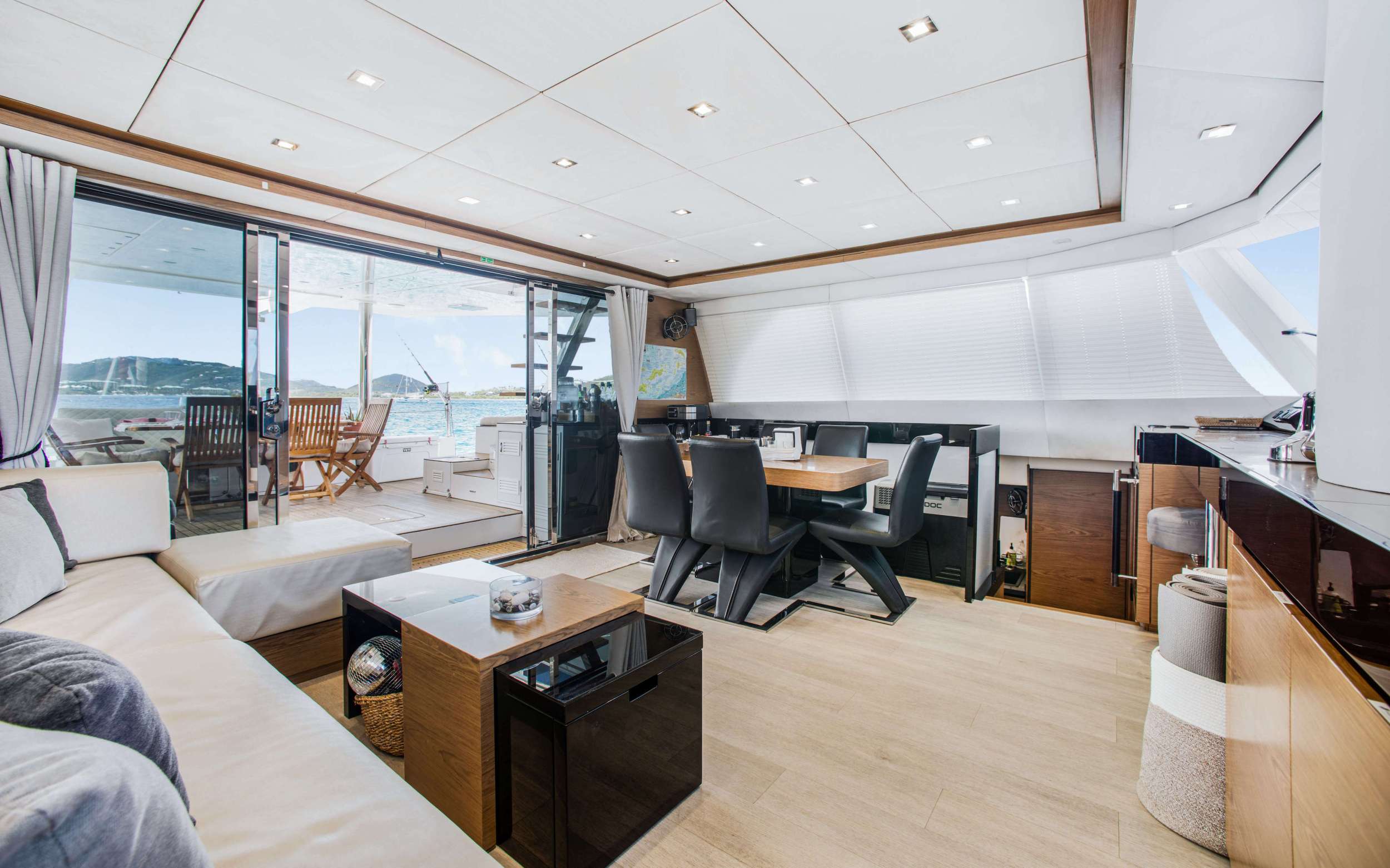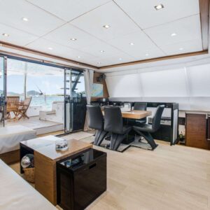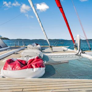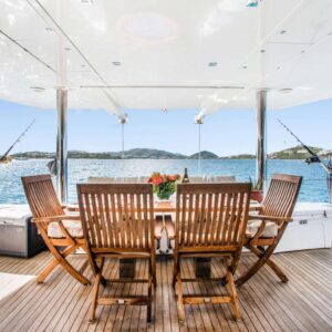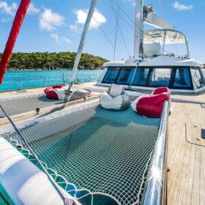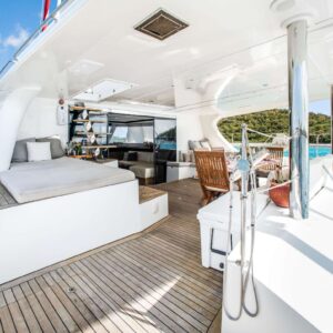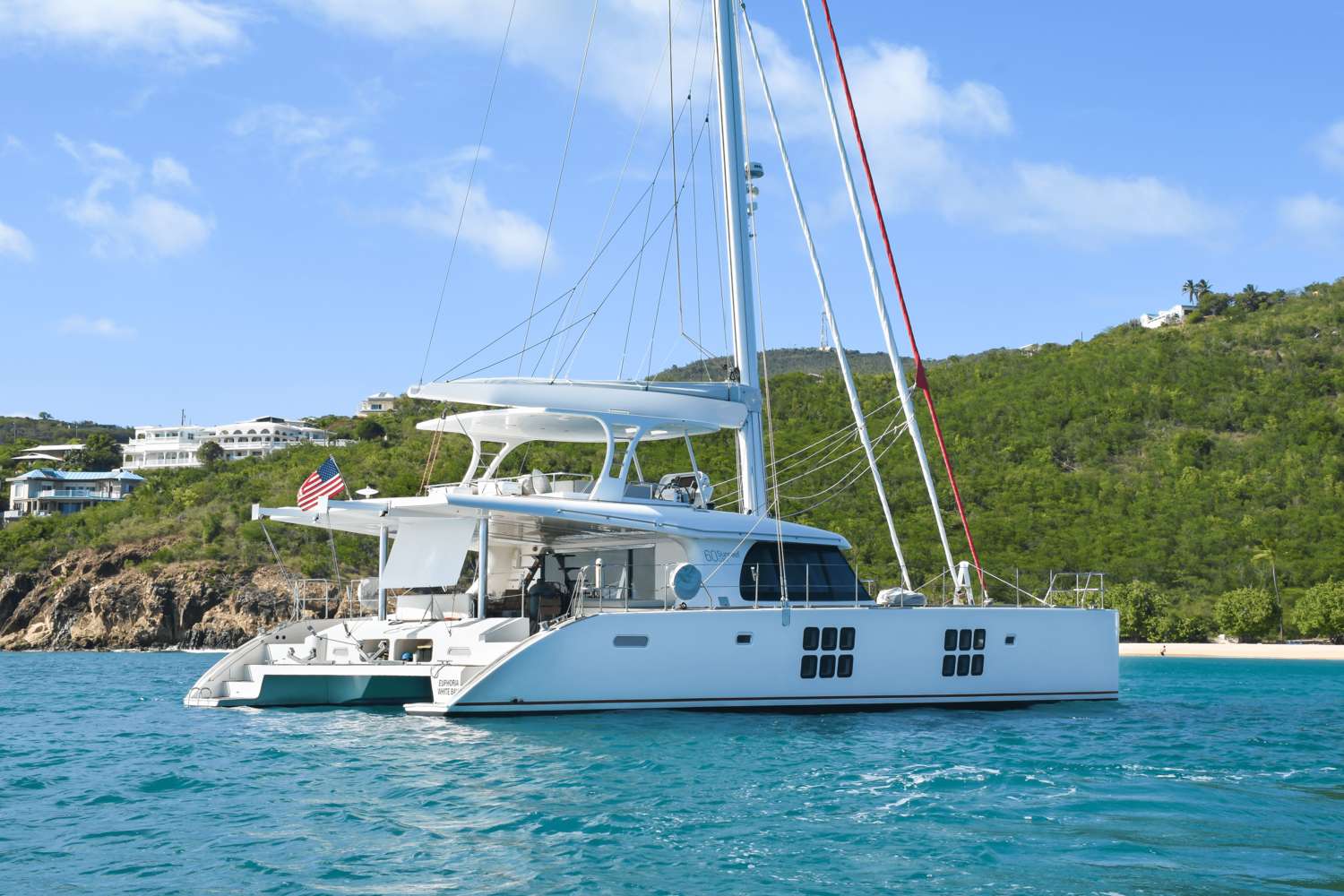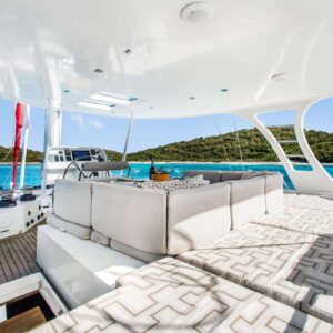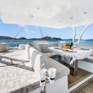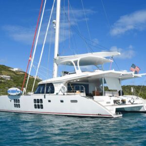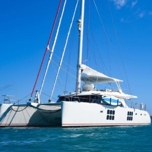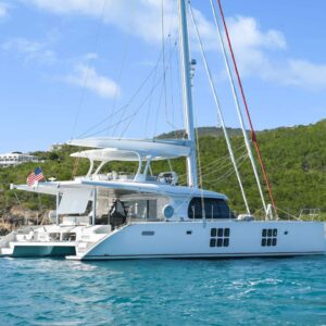 This stunning Sunreef is a superb example of a luxury charter sailing catamaran. She has 3 queen cabins each with private ensuite baths including electric heads, vanity and separate showers. She boasts multiple areas for all 6 guests to sit and relax or sip a cocktail and enjoy the cool trade winds of the beautiful Caribbean! Furthermore, the salon has more than enough space for all guests to be comfortable for lounging or dining. The exterior aft deck also offers alfresco dining for 6 guests, top deck seating and a lounge area in front of the helm. Your guests will have their expectations exceeded time and time again while on charter on Euphoria!
