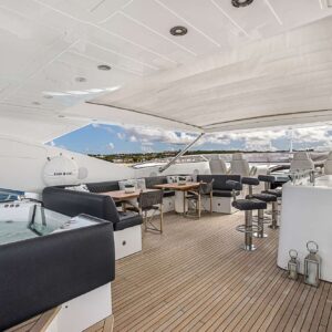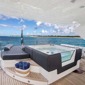 Her generous deck areas play host to a wide range of amenities, including an outdoor bar located on the sundeck, multiple alfresco dining options and a glass-fronted jacuzzi with retractable hood, offering far-reaching views of your surroundings as you relax and unwind. There is also ample space for lounging and relaxing in the bow as you soak up the rays or enjoy some quiet time as the sun sets. EVEREAST’s impressive leisure and entertainment facilities make her the ideal charter yacht for entertaining with family and friends.