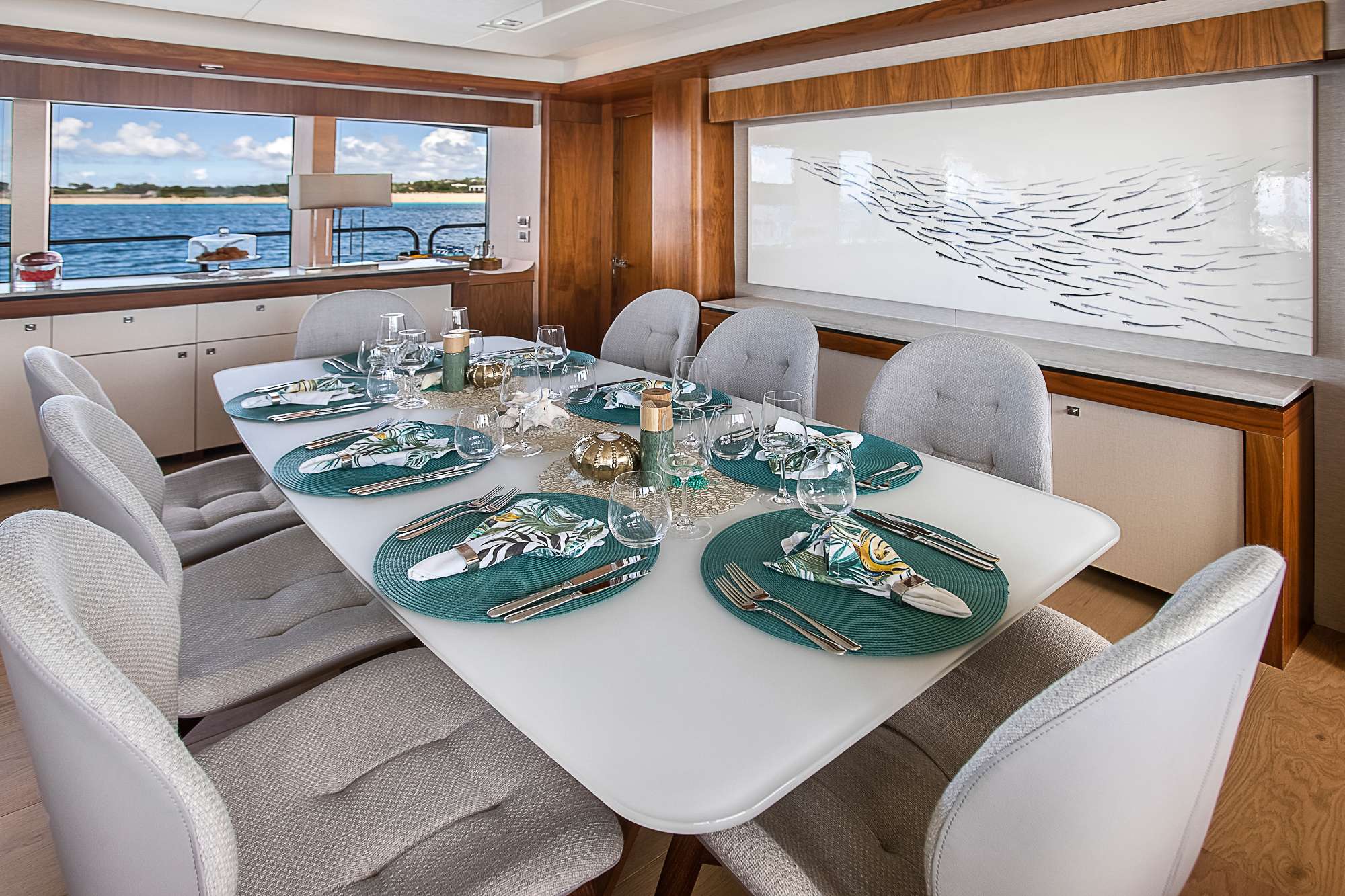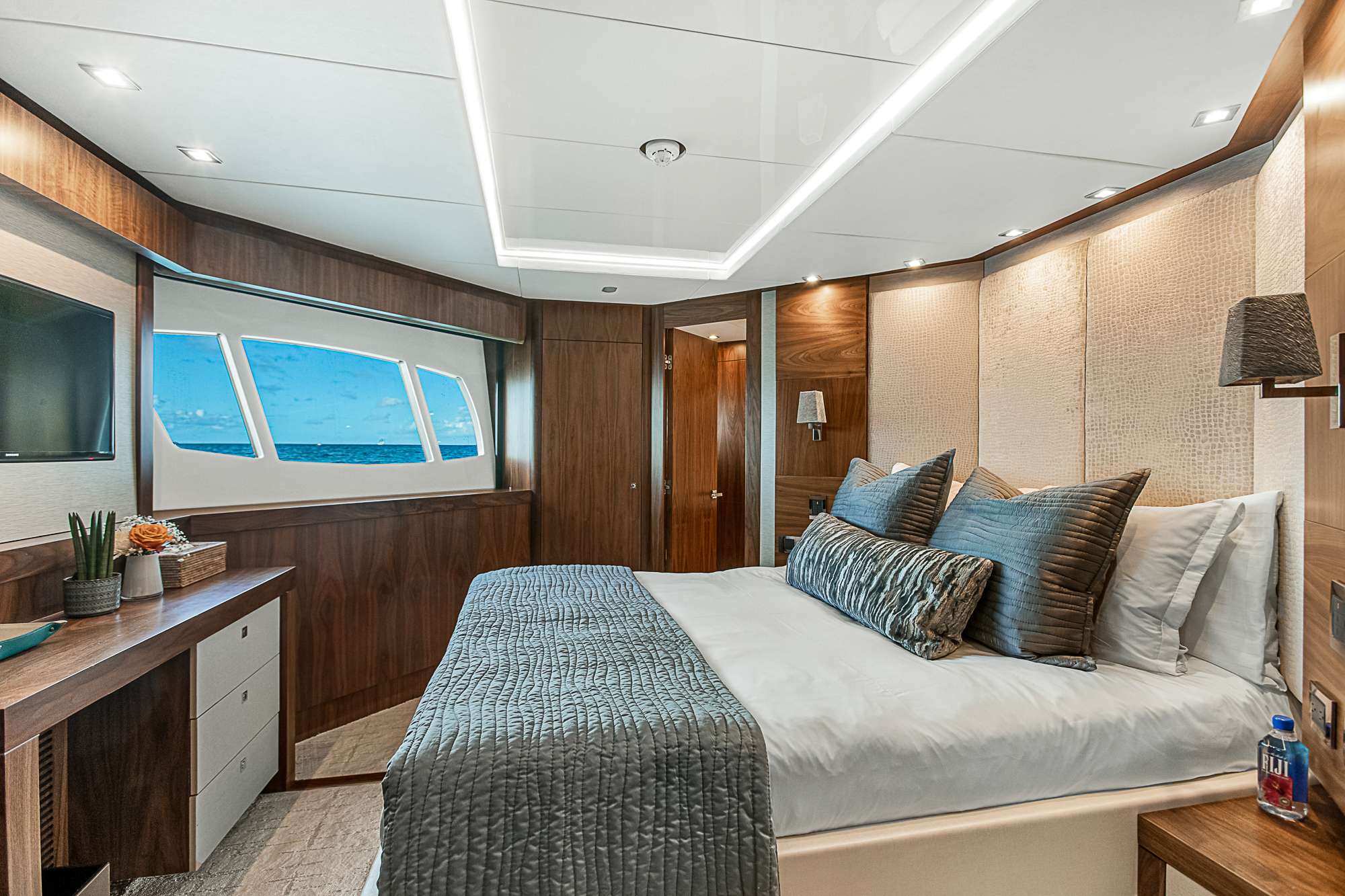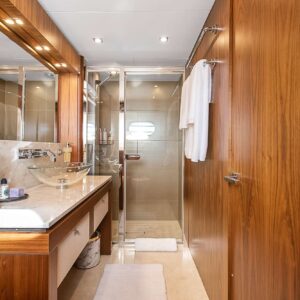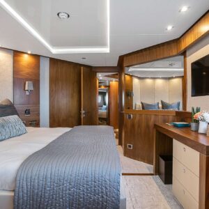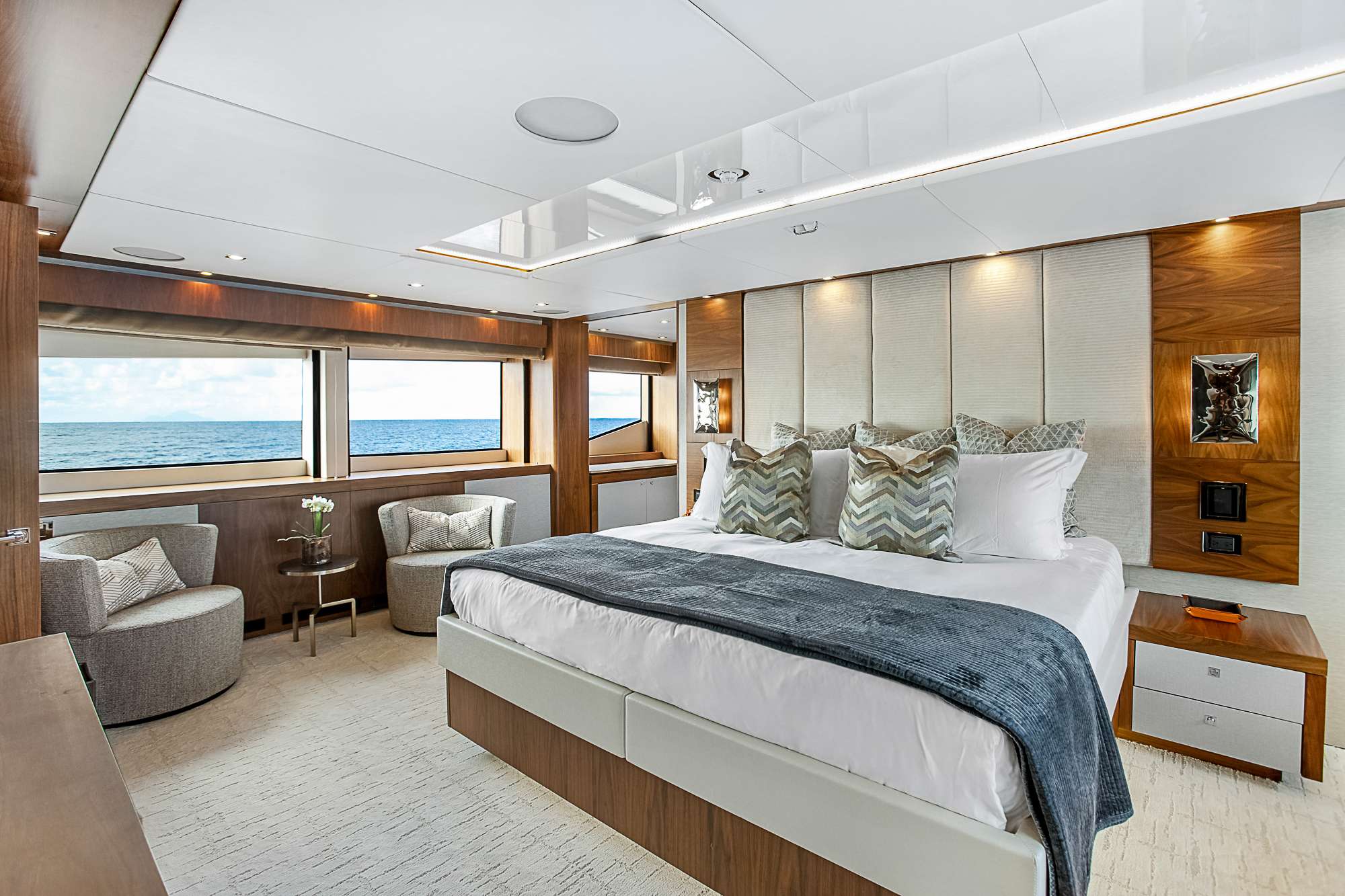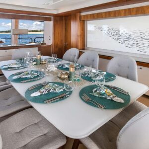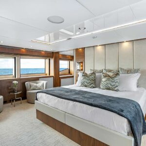 EVEREAST’s generous interior layout sleeps up to 11 guests in 5 beautifully appointed staterooms, including a main deck master suite, 2 VIP staterooms and 2 twin/convertible staterooms on the lower deck. There is a great team of 7 crew onboard to ensure a relaxed charter experience.