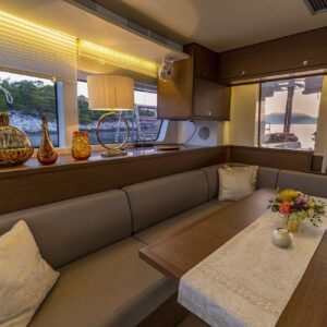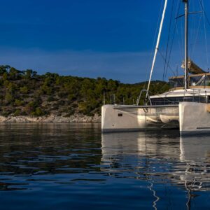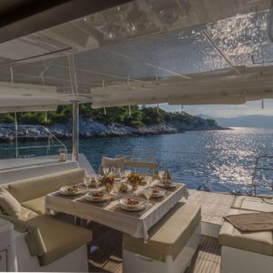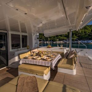 S/Y FLO is a Lagoon 52 – 2018 built. She is the perfect yacht to enjoy your summer vacation. She has three seating areas (front, aft and flybridge). Her bathing platform is idea for lounging and enjoying cocktails. She has four queen bed cabins all with private facilities. She boosts an array of water toys for fun on the sea. Her chef will prepare your delicious meals.