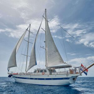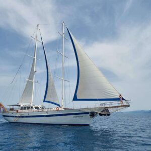Gulet Fortuna is 33 meters long yacht that will astonish you with her excellent sailing performances that are an amazing addition to your cruising vacations in Croatia. Her sails are functional and her crew will provide you with smooth sailing with no sound of engine. You can always give them a hand in their performances or just relax and enjoy. Gulet Fortuna has been completely refitted and improved for the season 2016. in order to provide higher standards of accommodation. She can comfortably accommodate up to 12 guests in 6 cabins. Being a large yacht, her decks provide plenty of space for outdoor living.