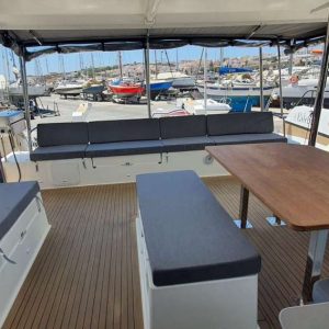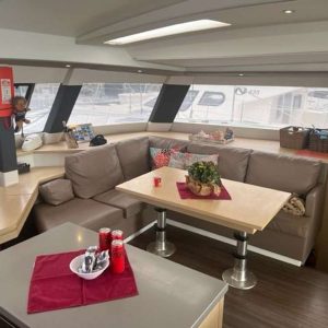 Step into spacious, light-filled cabins designed for maximum comfort. The expansive saloon is both practical and elegant, featuring a convertible sofa area and a well-appointed galley. With ample storage throughout, you’ll find every corner of this catamaran thoughtfully designed.