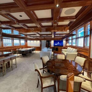 The whole of the Bridge Deck is brand new, as is the AV/IT, Communication System and other Technology, in order to make the whole experience for her guests one of feeling like being on a brand new yacht, but combined with being on somewhere where royalty once trod
