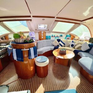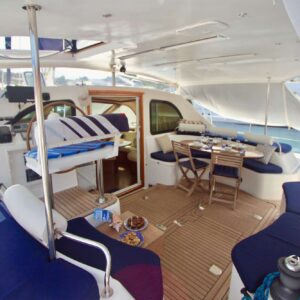 ISOLABLUE, a 49-foot Privilege sailing catamaran, is a masterful build. She is a high-end cruiser designed for luxury living at sea. This deluxe yacht is fully-equipped for transoceanic adventures in complete autonomy. State-of-the-art equipment includes: brand new air conditioner chiller inverter, generator, water maker, electric winches, battery chargers/inverter, solar panels, refrigerator, freezer, dive compressor and more. Please note the crew makes purified drinking water.