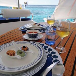 The crew provides a gourmet culinary experience on board Isolablue with fine foods surrounded by the beauty of the Grenadine islands. They can adapt to most diets (gluten free, diary free, vegetarian, vegan…. ) Please request the flyer on Gourmet Charters for further information.