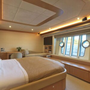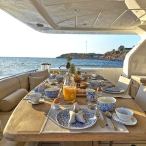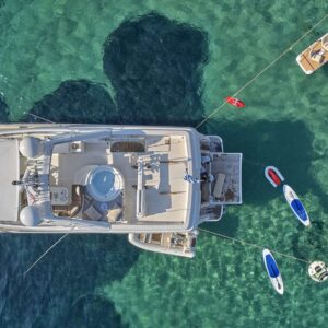 JULIE M is an exceptional yacht: filled with light throughout, contemporary interior design using light oak wood and leather, lots of toys and impeccable service, this Ferretti 830 offers the top charter experience in Greece. Let yourself be charmed!