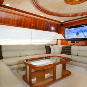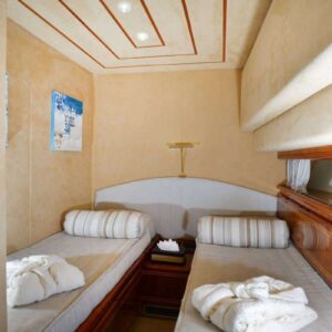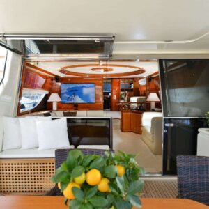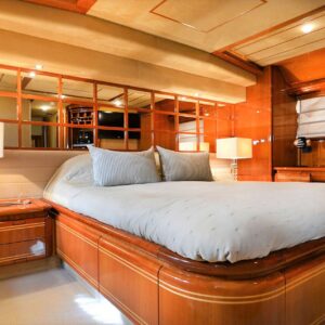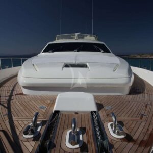 The 78.8ft /23.98m motor yacht ‘KENTAVROS II’ was built in 2000 by Ferretti and totally refitted in 2018. She has 4 luxuriously appointed en-suite cabins and can accommodate up to 8 guests in total comfort. She provides 1 Master Cabin with queen size bed, 1 VIP Cabin with double bed and 2 Twin Cabins with 2 single beds that can be converted to doubles. She is an ideal yacht for family charters as she has a very accommodating and children friendly crew.