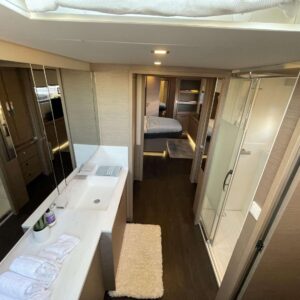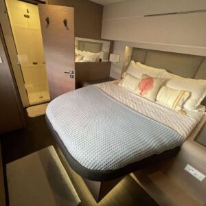 Krazy Kat has been carefully designed to create spaces that cater to all guests, from the most lively social gathering to the most relaxing moments of solitude. It has a flybridge with breathtaking dimensions… the largest in its category! The flybridge offers plenty of wrap-around seating for everyone in your group as well as two huge sun beds toward the aft. There is also a decadent foredeck with recessed seating and modular sunbathing stations.