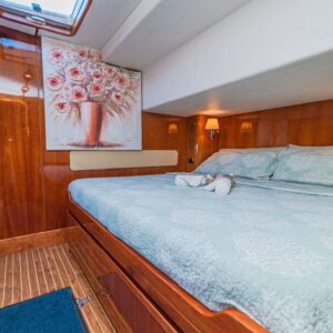 During 2022 – 2023 Lady Marigot has been equipped with new teak decks, new windlasses, new galley equipment, a new hull gelcoat, new rubber seals, new linens, new towels, and additional new water-sports equipment. In 2024 she received new hatches, new tender engine, new interior paneling for cleaner/fresher look, new kevlar rigging, upgraded galley and new propellors for faster motor sailing.