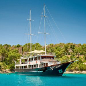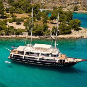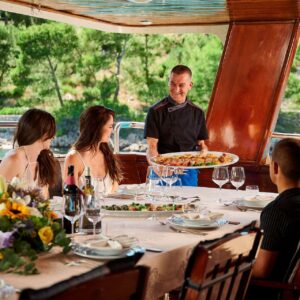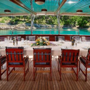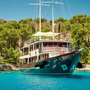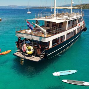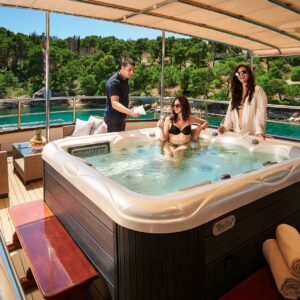 M/S LUNA has been an incredibly popular choice with mid to large groups for cruising the Croatian Coast for years. Why? Because she represents incredible value! Beautiful polished woodwork, luxurious spacious cabins, a full-length top sundeck, and a giant jacuzzi all for a little more than 1,200 Euros per person per week..!