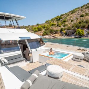 Step aboard the luxurious Majesty of Greece and let yourself be whisked away on a dreamlike vacation experience like no other. This stunning vessel marries the best of a power catamaran with Fountaine Pajot’s expertise in crafting award-winning motor yachts and luxury catamarans. As the crown jewel of the Motor Yacht lineup, the Power 67 exudes all the charm and elegance of a five-star resort at sea.