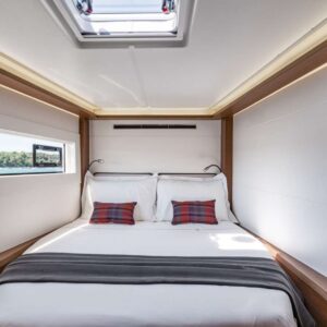 Step aboard, and you’ll be greeted by a meticulously crafted interior that exudes contemporary sophistication. The living areas are bathed in natural light, thanks to large panoramic windows that offer breathtaking views of the surrounding waters. The salon is a haven of comfort, featuring plush seating, a stylish dining area, and a state-of-the-art entertainment system, ensuring that every moment spent on board is one of sheer pleasure.