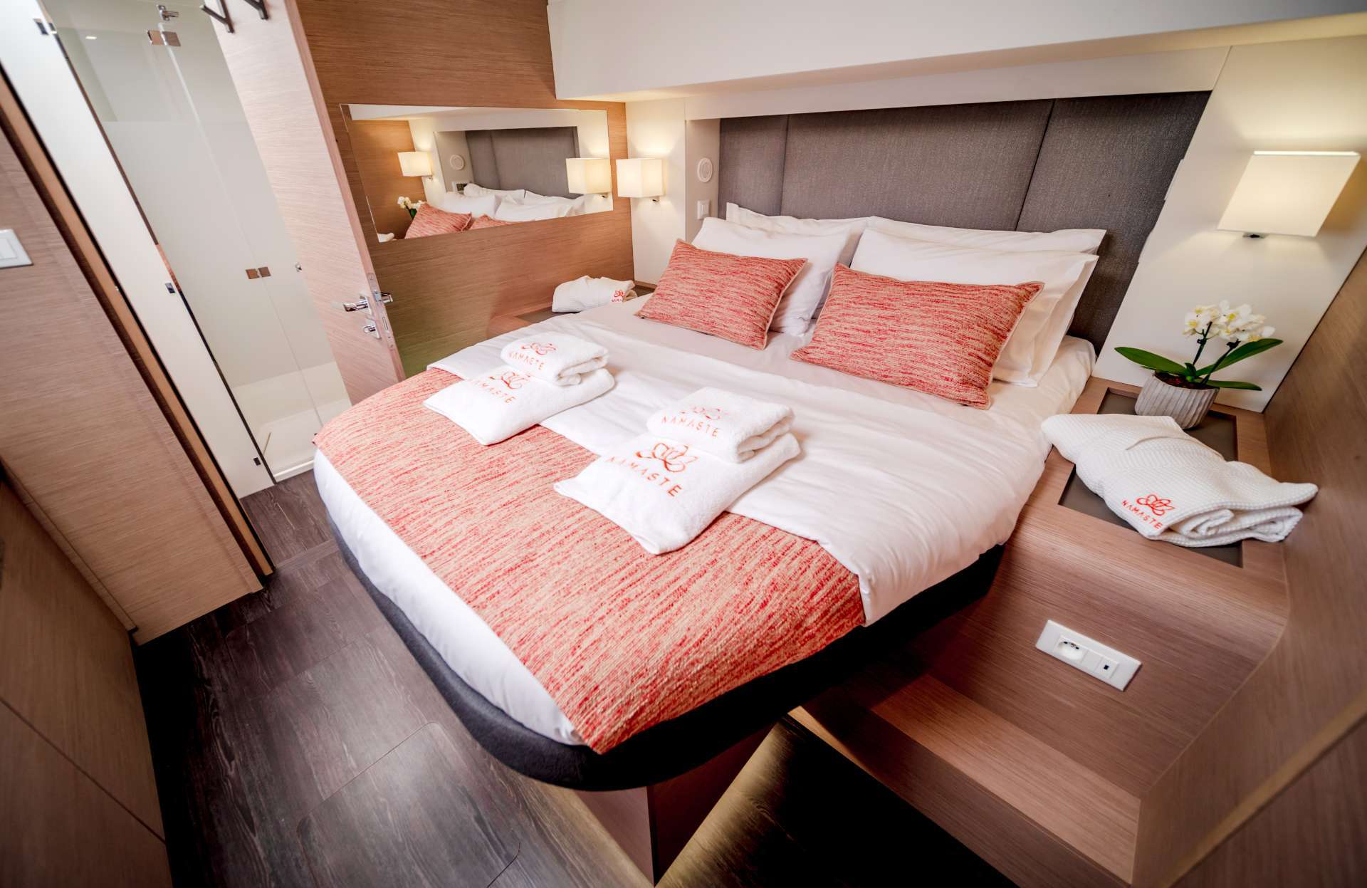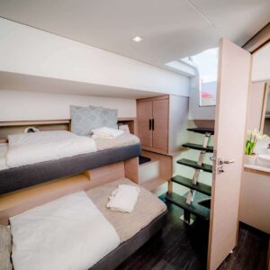 She has a large master cabin, two queen bed cabins as well as a large twin cabin with bunk beds with direct access to the deck. Enjoy all the pleasures of sailing and have an amazing time on board S/Y NAMASTE.
