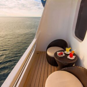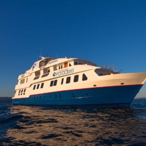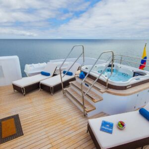 Elegant and comfortable, the Natural Paradise is the newest yacht in Galapagos. Four of her nine cabins feature private balconies and the main deck suite offers an ample relaxing space. Her social areas include a beautiful teak sundeck with Jacuzzi and a cozy al fresco dining. On the main deck you will find a spacious lounge and dining room. Snorkelling equipment, wetsuits and sea kayaks are available on board.