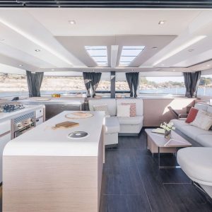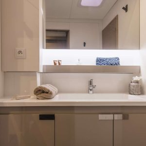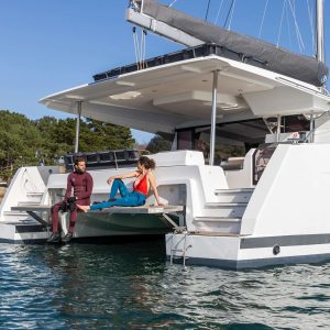 Aura 51 NEW is one of the most luxurious and modern catamarans on the Adriatic Sea managed by enthusiastic Polish owners. In his category belongs to TOP 3 best catamarans in Croatia available for charter. In hotel terminology, this catamaran is a floating 5***** hotel. This elegant beauty on the water and with high levels of performance, also offers a splendid place to relax with its carefully crafted Lounge deck. This is integrated into the design process from the very beginning in order to give the craft its beautiful lines as well as the best possible levels of comfort, both at sea and at mooring. Motion on board has been designed to ensure privacy between saloon, front or rear deck or Lounge deck on the top floor. Aura 51 NEW is ideal for multigeneration families, students and young people which wish to experience unforgettable sailing party. Alternatively it can perfectly fit for business partners arranging teambuilding for their clients and employees.
