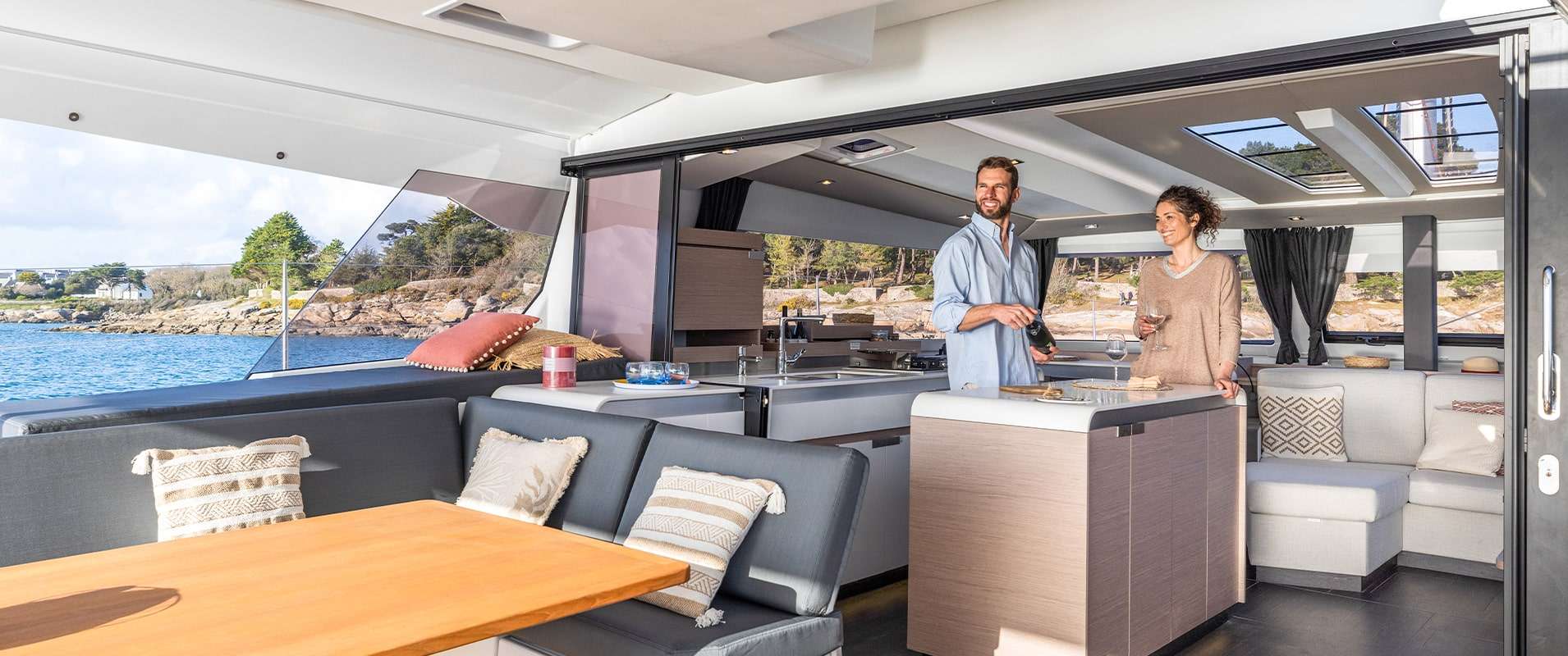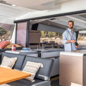 Aura 51 Ocean Eye is one of the most luxurious and modern catamarans on the Adriatic Sea managed by enthusiastic Polish owners. In his category belongs to TOP 3 best catamarans in Croatia available for charter. In hotel terminology, this catamaran is a floating 5***** hotel. This elegant beauty on the water and with high levels of performance, also offers a splendid place to relax with its carefully crafted Lounge deck. This is integrated into the design process from the very beginning in order to give the craft its beautiful lines as well as the best possible levels of comfort, both at sea and at mooring. Motion on board has been designed to ensure privacy between saloon, front or rear deck or Lounge deck on the top floor. Aura 51 Ocean Eye is ideal for multigeneration families, students and young people which wish to experience unforgettable sailing party. Alternatively it can perfectly fit for business partners arranging teambuilding for their clients and employees.