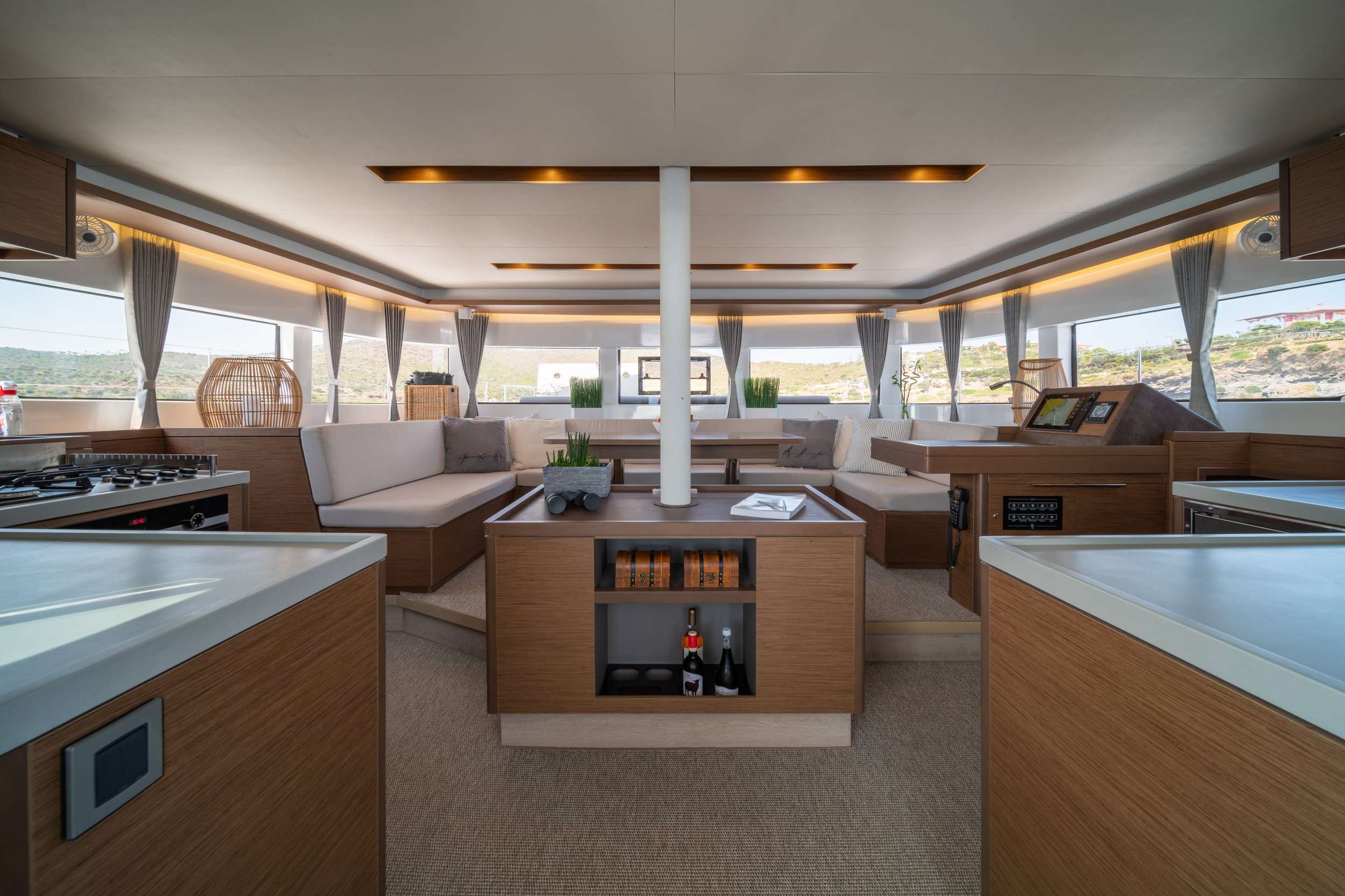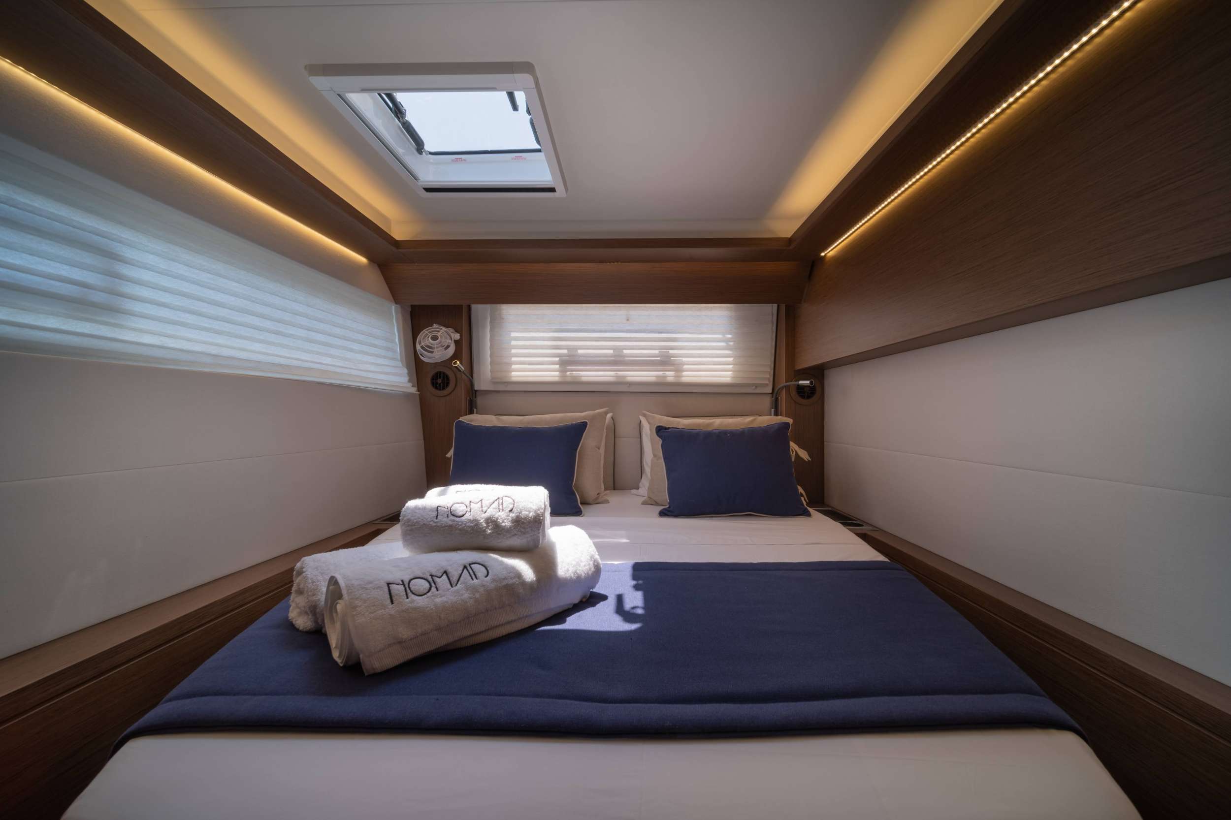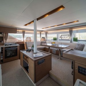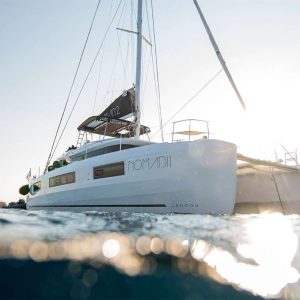 The Lagoon 50 NOMAD II boasts a spacious and thoughtfully designed layout, featuring innovative architecture that creates a warm and inviting atmosphere. With her new visual identity, advanced rigging, and hull design, she offers enhanced performance and a distinctive brand signature. The elegance of NOMAD II is captivating, with her bevelled hulls, generous volumes, and panoramic views that are more impressive than ever.