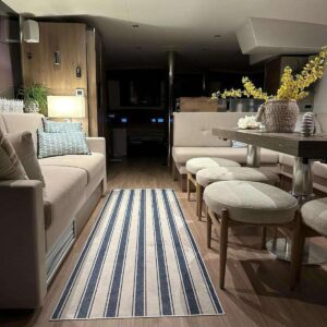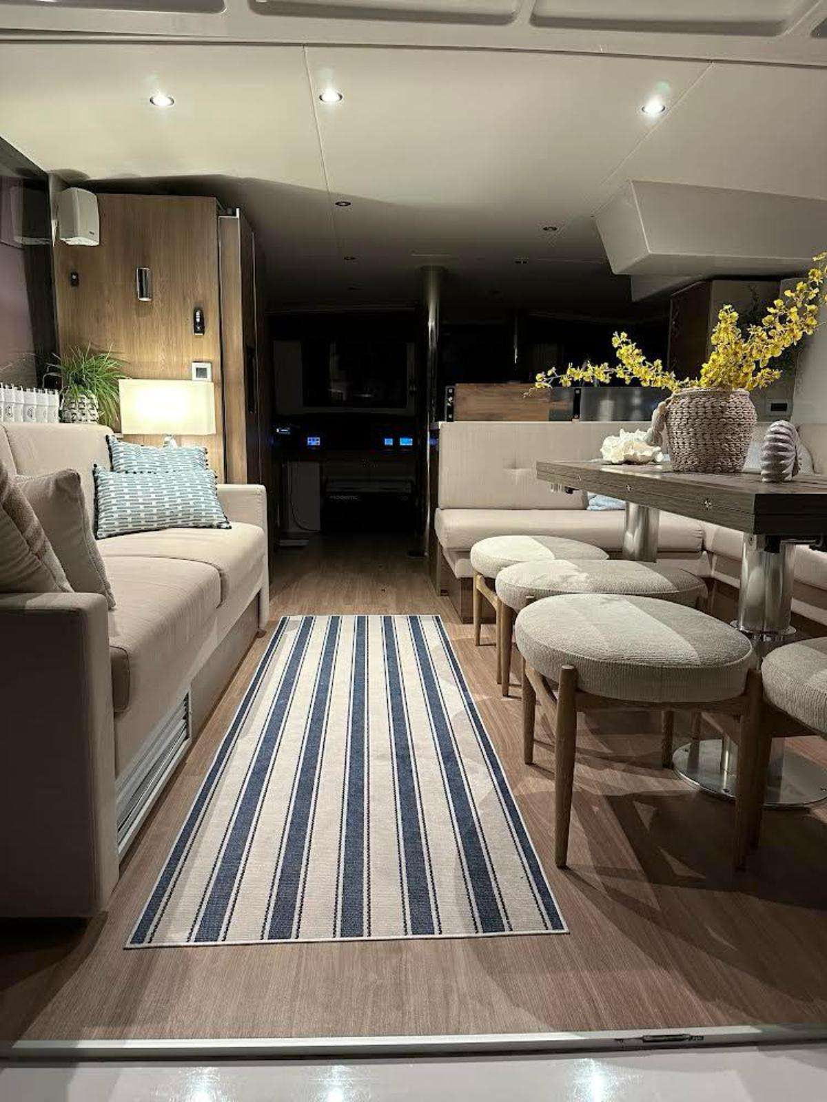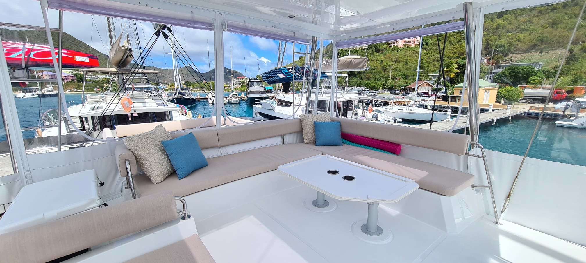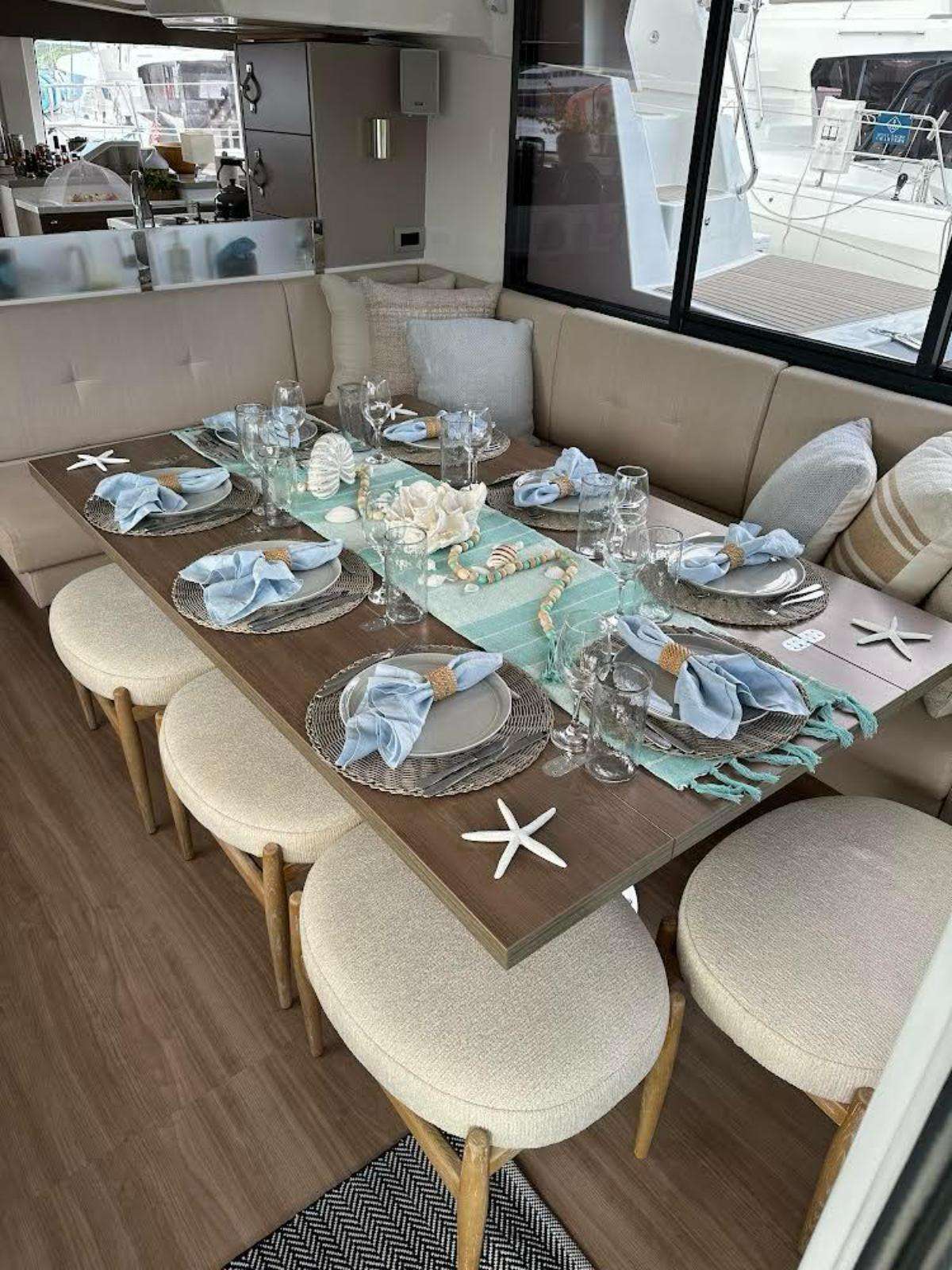 Oceana will accommodate 8 charter guests in 4 spacious queen cabins. She is a 2021 sailing catamaran offering soft foam decking that encompasses the entire deck and flybridge, lithium batteries and solar panels that allow the air conditioning to run without the generator, a water maker, ice maker, full sized refrigerator, a fully customizable menu, ecofriendly and reef safe toiletries, a bar stocked to guest preference, coffee/espresso machine, rendezvous scuba diving, snorkeling gear, underwater scooters, subwing, wakeboard, stand up paddle board, towable water tube, 10 ft. floating dock, pool noodles, fishing gear, board and card games, television in the salon, Fusion 3 Bluetooth enabled sound system and Oceana giveaways. Oceana is an award-winning yacht, having taken home the following awards: 2022 USVI Charter Yacht Show – Best Yacht Under 50 ft Runner Up; and 2023 USVI Charter Yacht Show – Best Yacht Under 50 ft Runner Up.