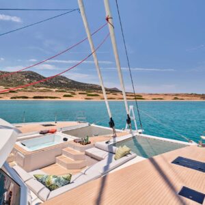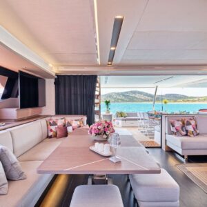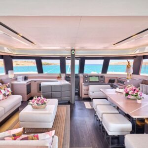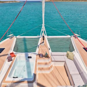 S/Y PIXIE is a Fountaine Pajot Alegria 67, she is a remarkably beautiful and comfortable sailing catamaran designed by Berret Racoupeau Yachts Design for the most discerning sailors. Its incredibly spacious flybridge provides unrivaled comfort, and its bow cockpit, which features a separate Jacuzzi zone, symbolizes a lifestyle worthy of the best.