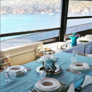 Her interiors are furnished with light and natural tones enhanced with a typical nautical style.