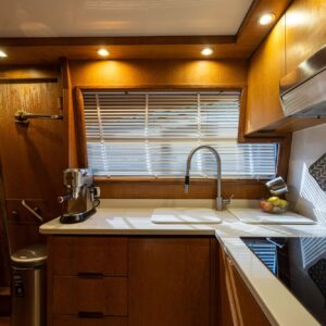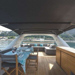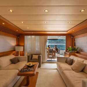 Guests will find several lounging areas aboard, including the bright, welcoming salon with a separate dining zone for up to 8 guests where relaxing with family and friends.