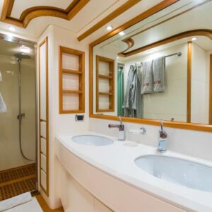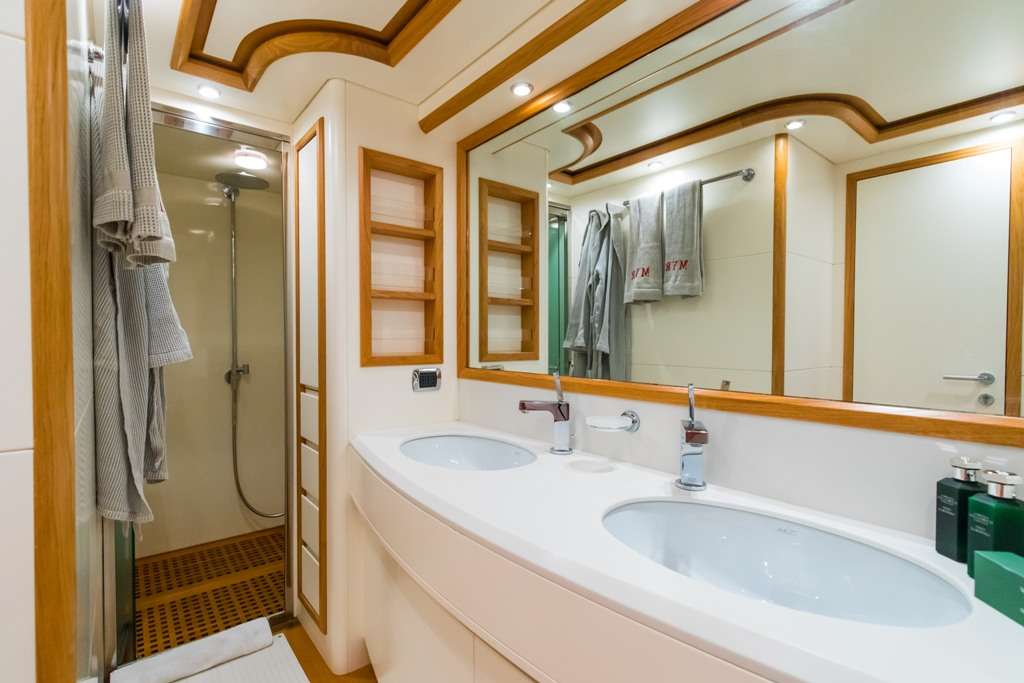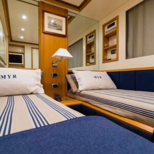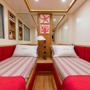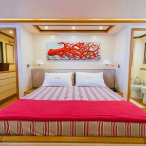 Modern, fast and luxurious, Riviera offers accommodation for up to 9 guests in four wonderful cabins located on the lower deck. Both the master and the VIP suite are full-beam, this means they’re very spacious, light and airy. One of the two twin cabins offers an additional Pullman bed; All cabins have en-suite facilities and flat screen TV.