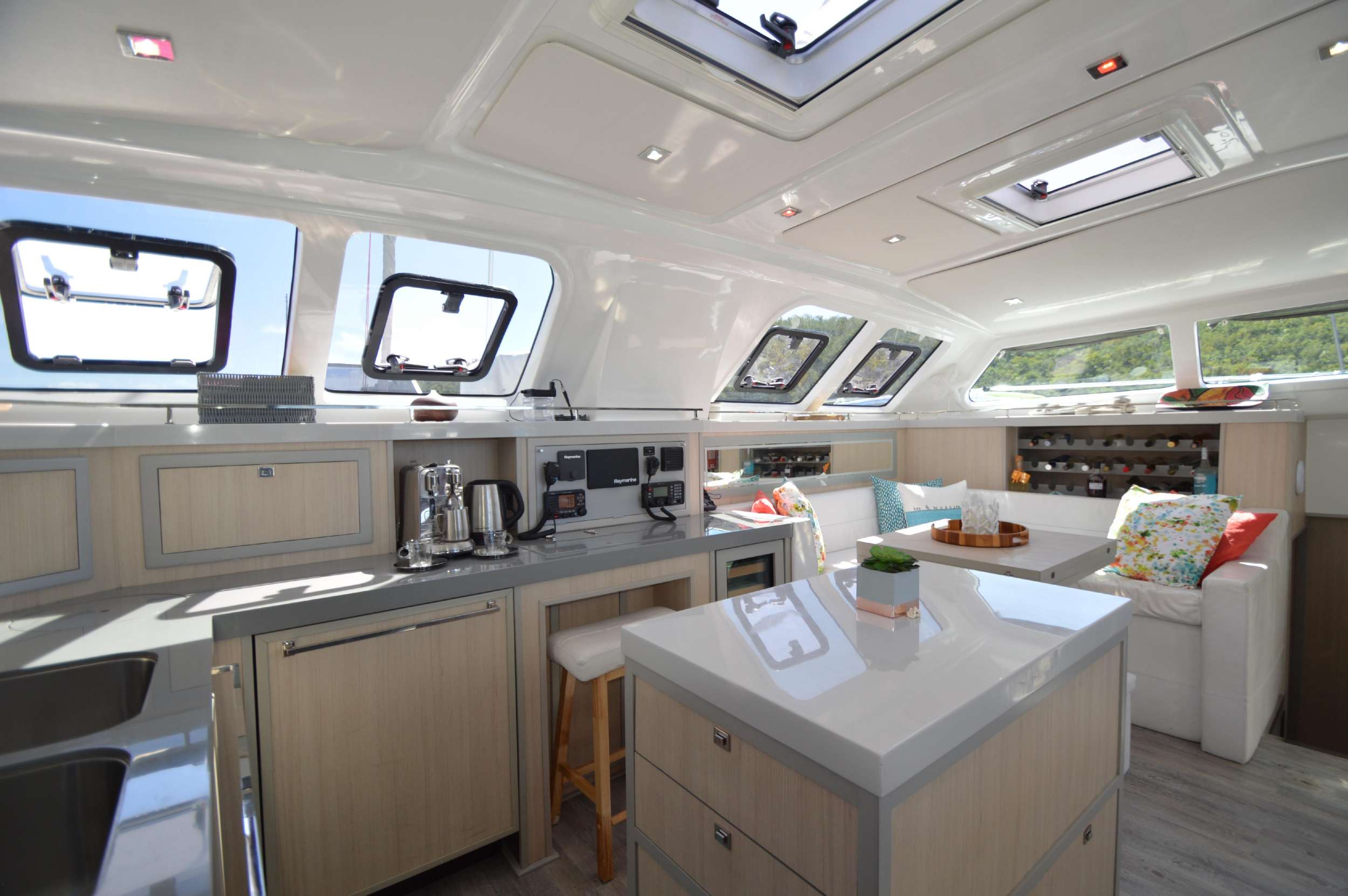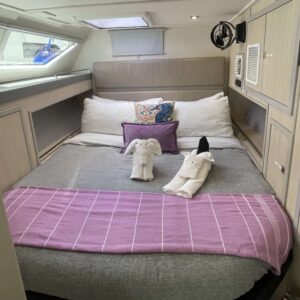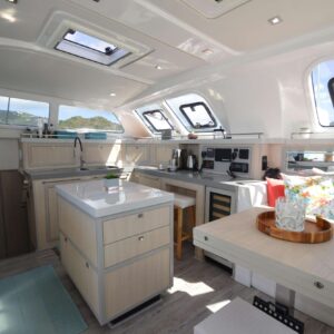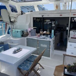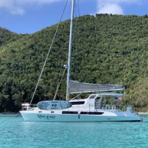 Captain Travis has been known to say he likes Fast Cars and Slow Boats… Born in Georgia, but raised in Texas, Travis spent the early part of his career working on race car teams (and racing whenever he got a chance). He has worked on everything from Vintage Can Am cars, Formula Fords, Toyota Atlantic, F2000, World Challenge, and Nascar Super Trucks. Life in the fast lane certainly was a good time, but there was something about the calmness, and challenges, of sailing that caught his attention. He eventually hung up the tools and helmet, and bought himself a Hobie Cat and learned to sail. He also started and grew a family business with his Father and 3 siblings, manufacturing product that was supplied to the Land Yacht industry (motorhomes). Raising two kids kept him on land but once they became adults themselves, he knew that a life on the ocean was where he wanted to be. While the kids were home, he started them off on a Sunfish and then went through owning progressively larger monohulls. Once the kids graduated and moved on to college, he and his wife bought a 47’ monohull which they lived aboard for over a year before deciding to change their path in life and purchase RumAway, a 53’ luxury catamaran so that they could share their passion with others. He still enjoys driving a Fast Car now and then, but Slow Boats (sailboats), and life in the warm, blue waters of the Caribbean, are what brings him joy. He looks forward to sharing that joy with you on RumAway. Tara has always had a love of the water. You could say it’s in her blood; she was born on a boat (technically she was born at the hospital, but came “home” to a boat). After spending her first few years on a boat in Santa Cruz Harbor, California, her parents decided keeping Tara out of the water and on the boat was more than they could handle; so they sold the boat and bought a Land Yacht (motorhome). The next few years were spent living on the road, seeing the sights. (If you can’t tell, her parents were borderline gypsies, so it’s no surprise that Tara would one day be drawn back to life on the sea). Tara moved around quite a bit before settling in Texas. Corporate America was Tara’s career path where she has worked for several major corporations that sent her travelling all over the world implementing various systems. Tara has always been passionate about cooking, and it’s no surprise that her first job was in the food industry. She got sidetracked with other positions in Corporate America before going back into the food industry for the last 10 years of her career. To say again that Tara is passionate about cooking is an understatement. Tara finds great joy in preparing tasty meals for others to enjoy. She looks forward to sharing with you her creations in the galley. Tara and Travis were MFEO (made for each other). After raising two children of her own, it was in Texas where she met Travis. Travis had a 30’ monohulled on a local lake, and it wasn’t long before Tara was back on the water, where her life started. Travis and Tara were the perfect match; Travis had a dream (to live on a sailboat) and Tara had a plan (how to make it become reality). After surviving (actually thriving) raising 4 teenagers with their new blended family, Tara and Travis set their sights on the prize; to live on a boat. They have been “captain and crew” for many groups bareboating in the islands, and the one common thing that everyone said is “Y’all are so good at showing us a good time and taking care of every last detail, you should do this for a living”. Well 5 boats, ASA certifications, and USCG Captain’s school later, here they are ready to share their love of sailing the islands with you on RumAway. ***CREW IS FULLY VACCINATED FOR COVID-19****