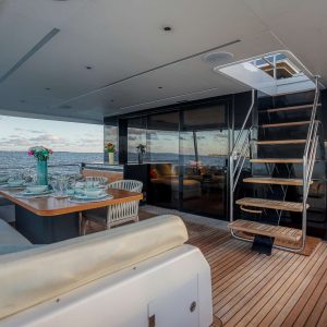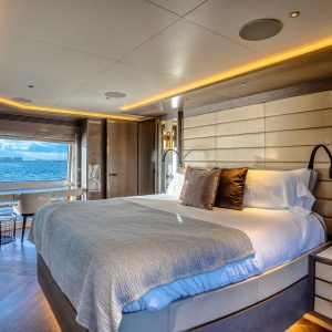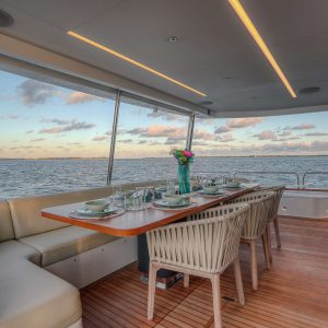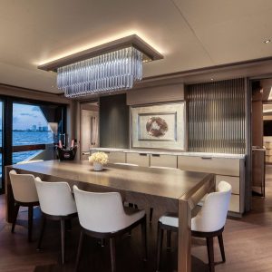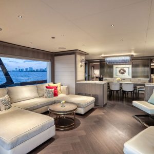 Welcome to the world of SAINT, where luxury and performance come together as one. This high-performance yacht is designed to deliver a luxury experience like no other. With a sleek and modern design, the SIRENA 88 will make you feel like you’re traveling first class. She offers a luxurious interior complete with a spacious salon, a full galley, and a complete entertainment system. The exterior features a private pool and lounging deck on the bow, accessed from the on deck Master suite. The flybridge is the perfect place to enjoy the sun, fresh air, and stunning views, with spacious lounging areas, Jacuzzi and wet bar, Come aboard and experience the ultimate in luxury, performance, and style.