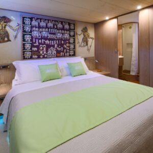 The yacht offers 4 cabins tastefully furnished: 2 doubles and 2 twins for 8 guests all equipped with TV, stereo, air conditioning, minibar.